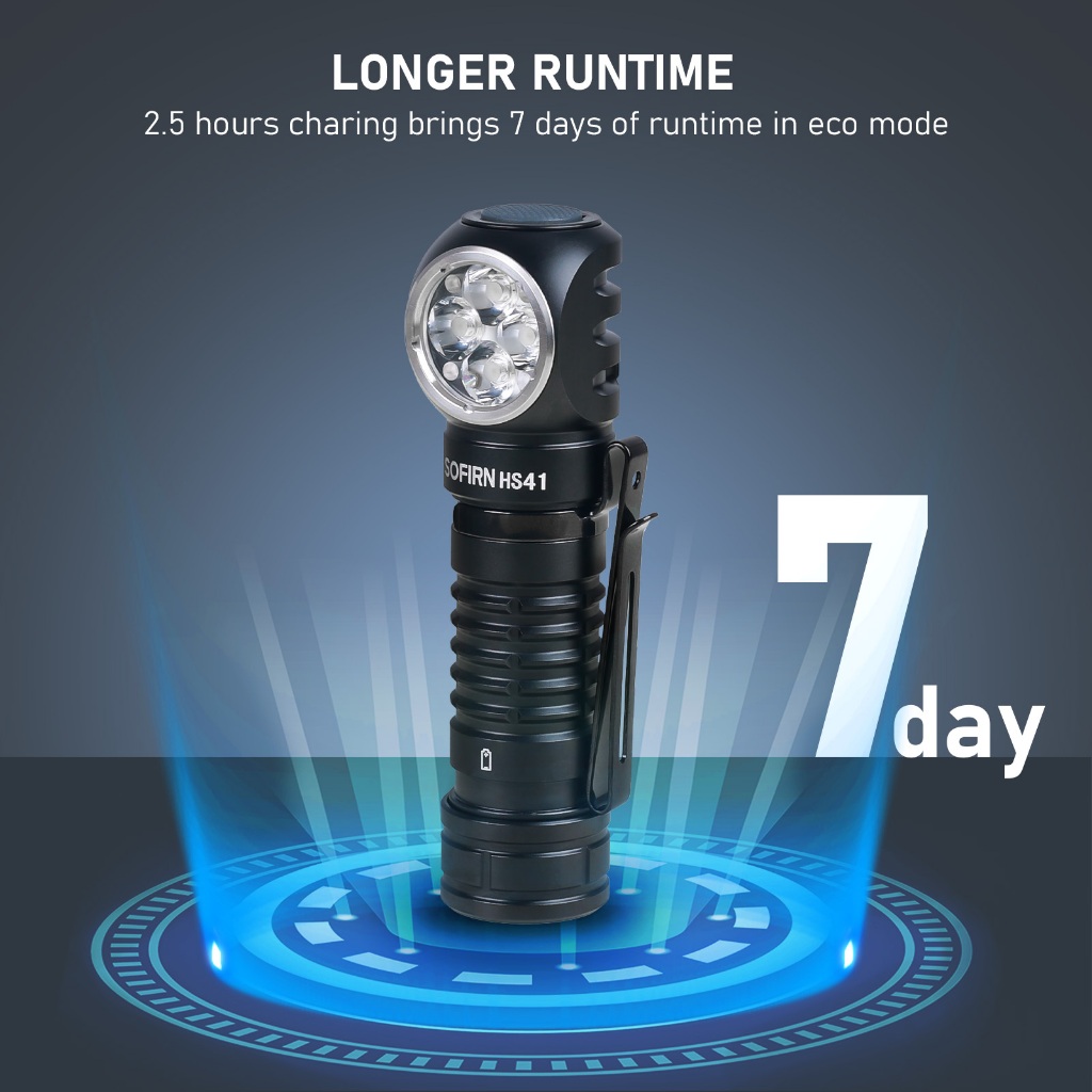 Sofirn HS41 4000 Lumens Rechargeable Headlamp USB C Sudut Kanan Lampu Kuat21700Lampu
