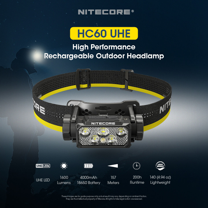 NITECORE Senter Kepala 6 Core LED Headlamp 4000 mAh 1600 Lumens IP68 - HC60 UHE - Black