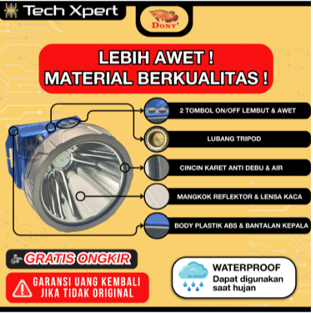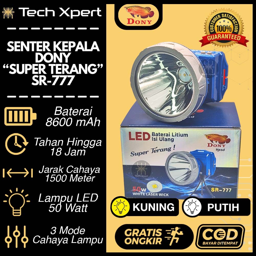 SENTER KEPALA DONY SR-777 LED 50W - CAHAYA SUPER TERANG - JARAK JAUH - TAHAN LAMA - WATERPROOF - FREE TRIPOD!!