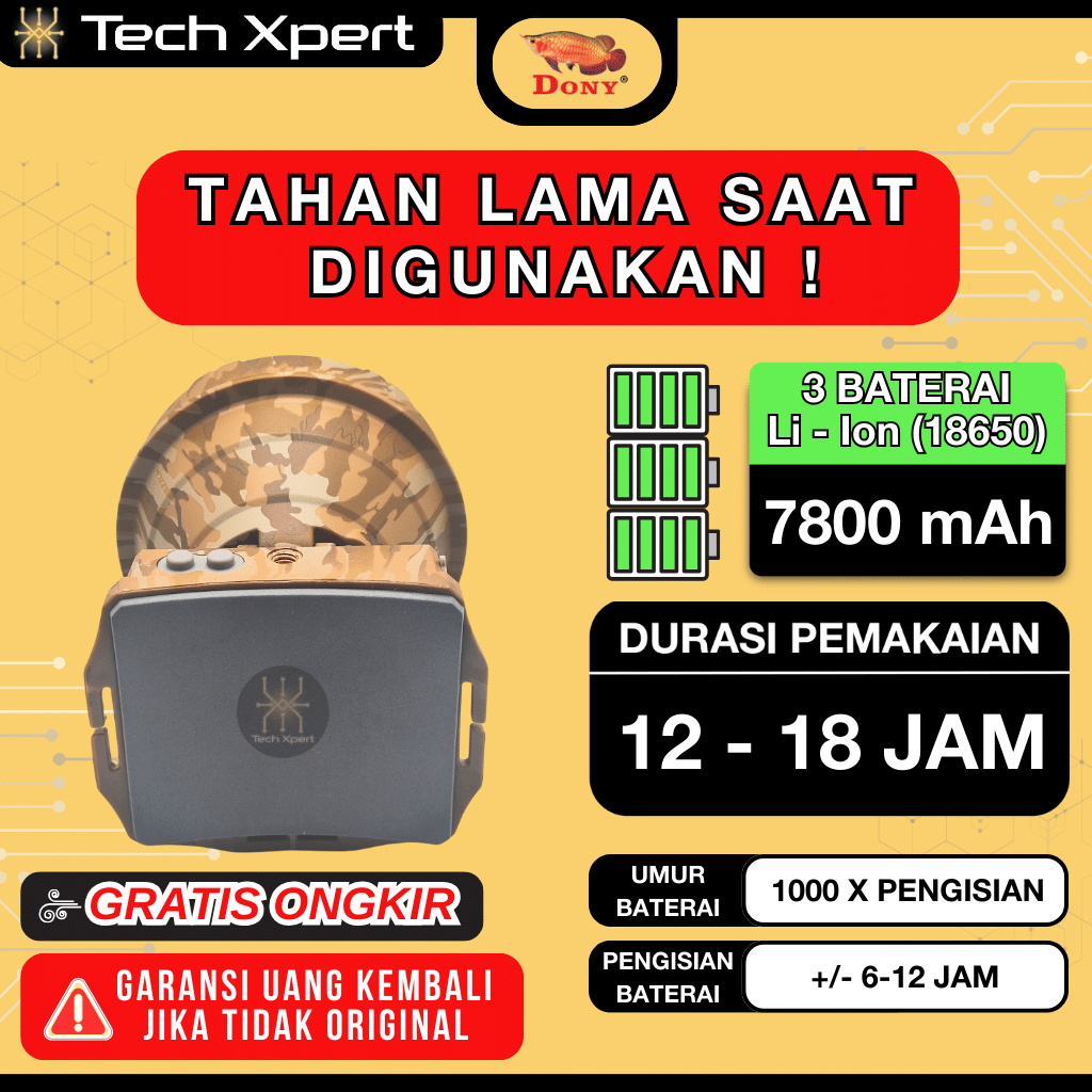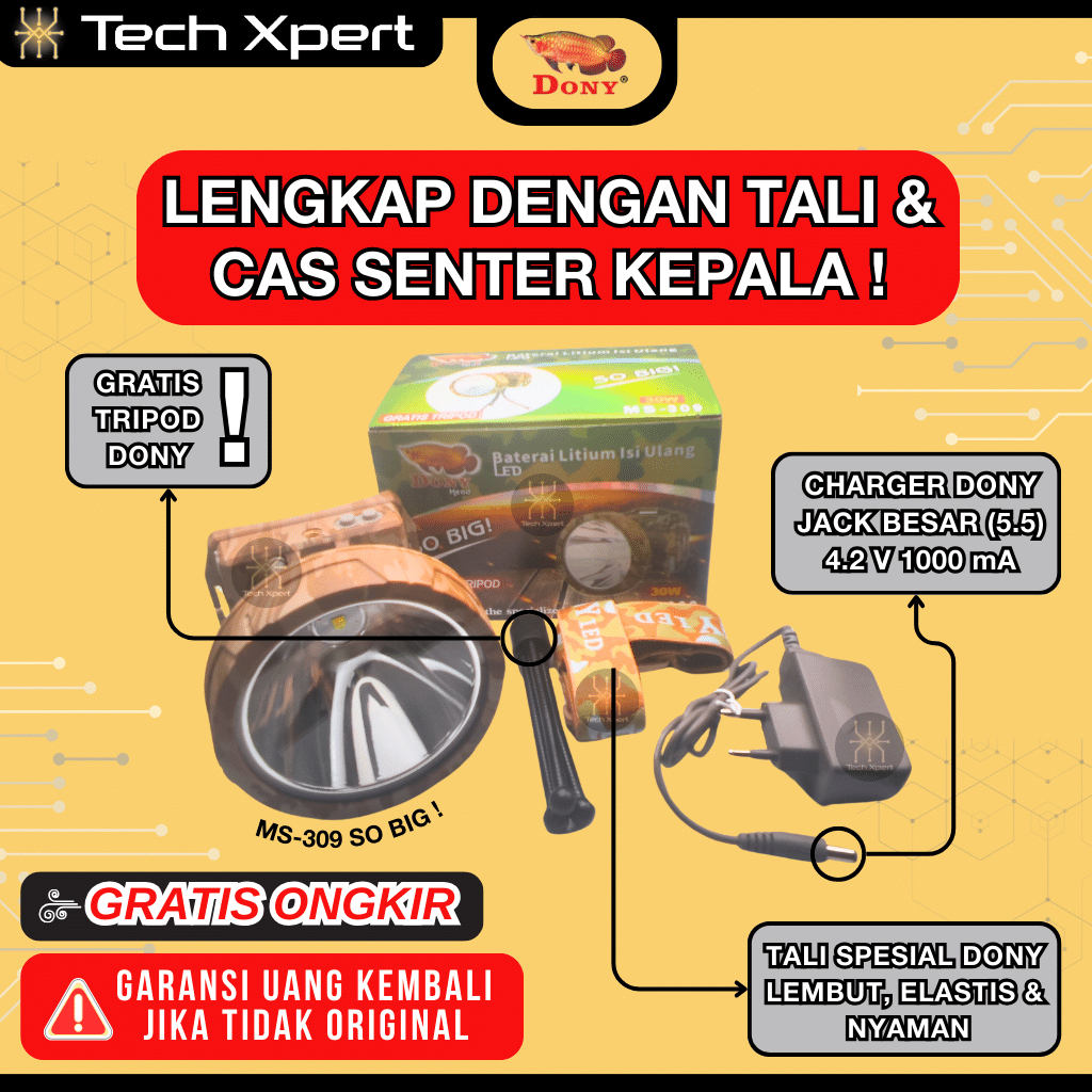 SENTER KEPALA LED DONY 50 WATT MS-309 "SO BIG" ORI SUPER TERANG ANTI AIR FREE TRIPOD OUTDOOR (JUMBO)