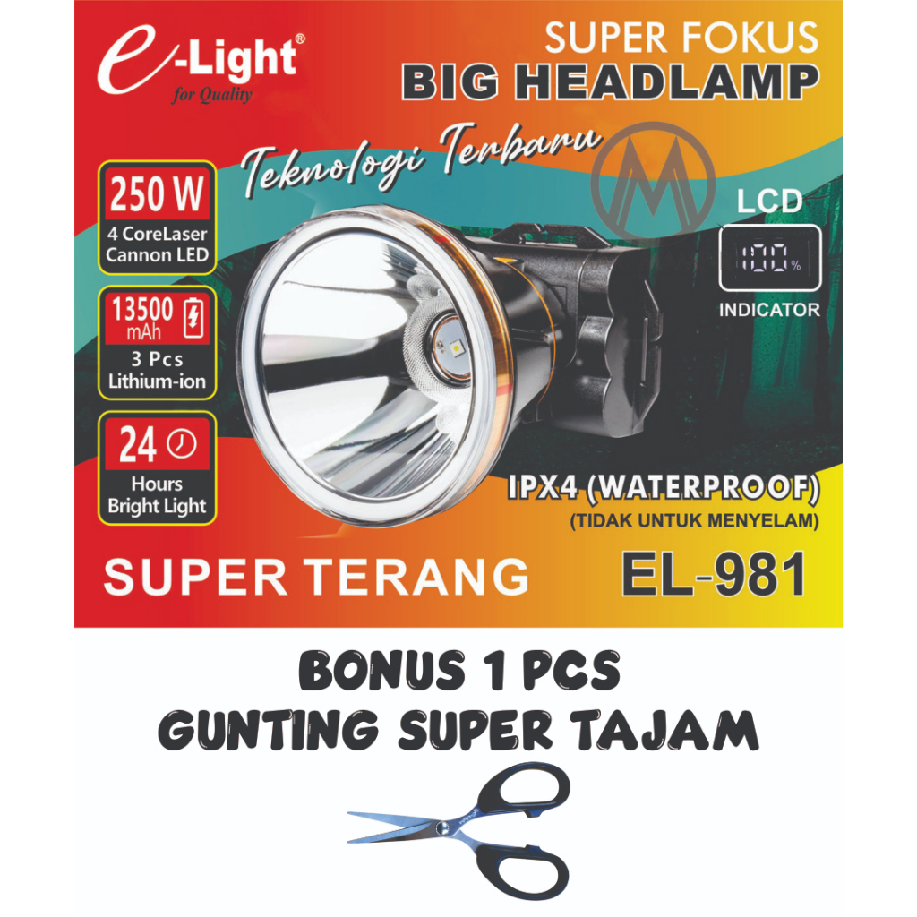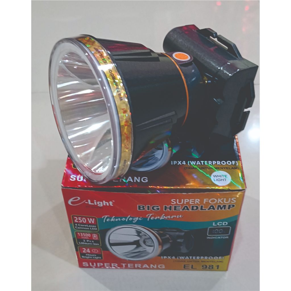 SENTER KEPALA BESAR SUPER TERANG SUPER FOKUS 250W / BIG HEADLAMP SUPER TERANG EL 981
