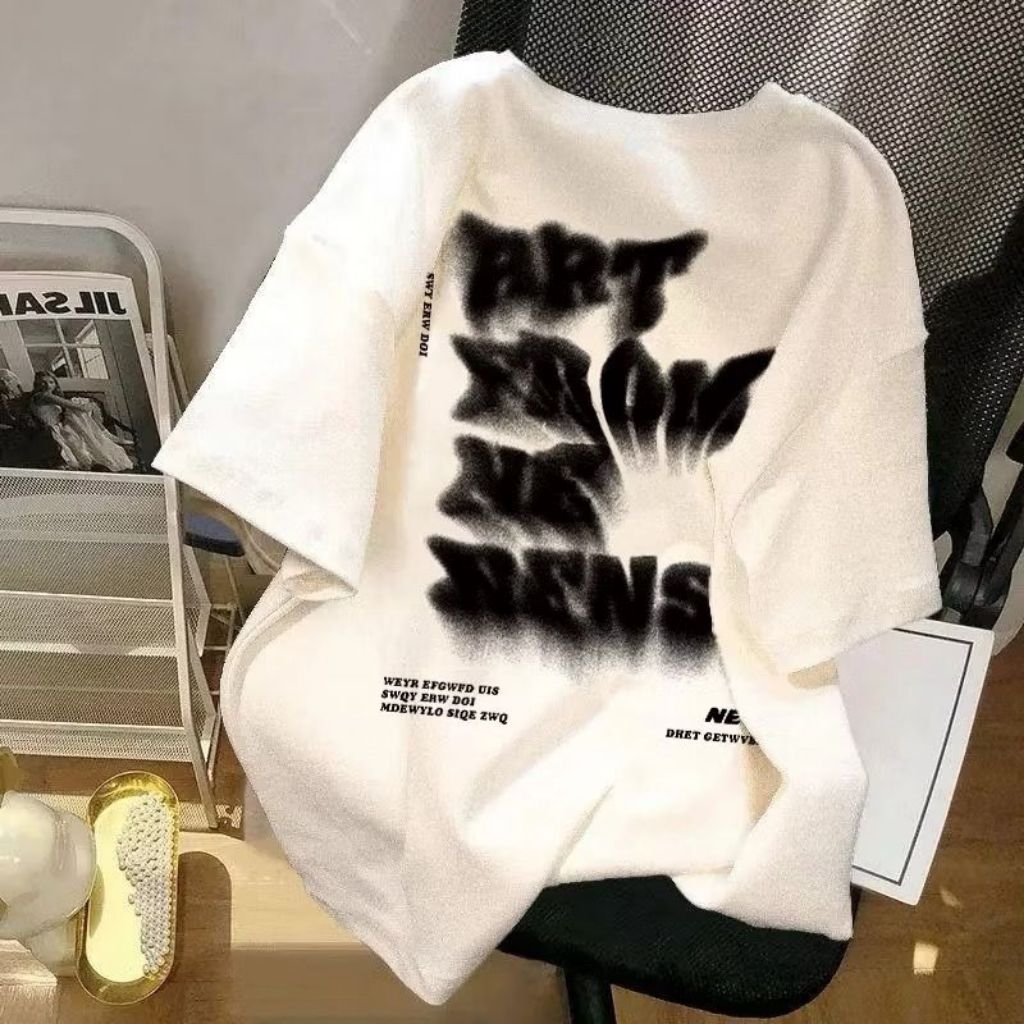 Kaos Cowok Distro Vintage Retro Unisex Pria Wanita | T-Shirt Oversize Lengan Pendek Black Letter Print