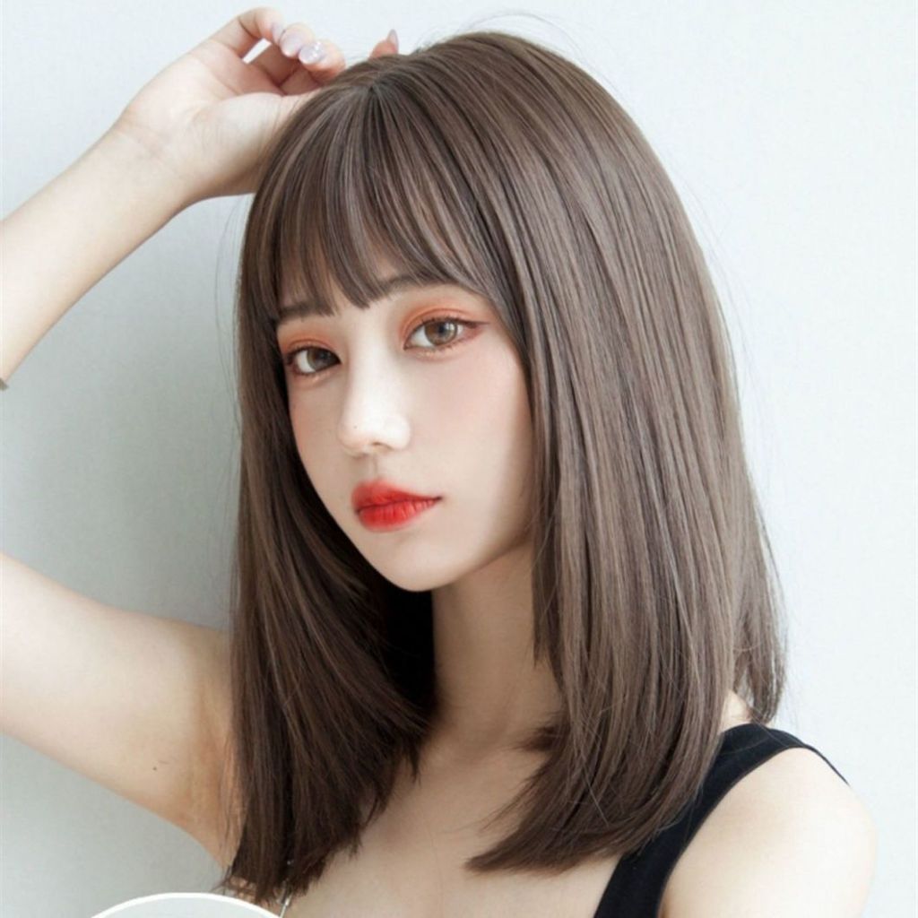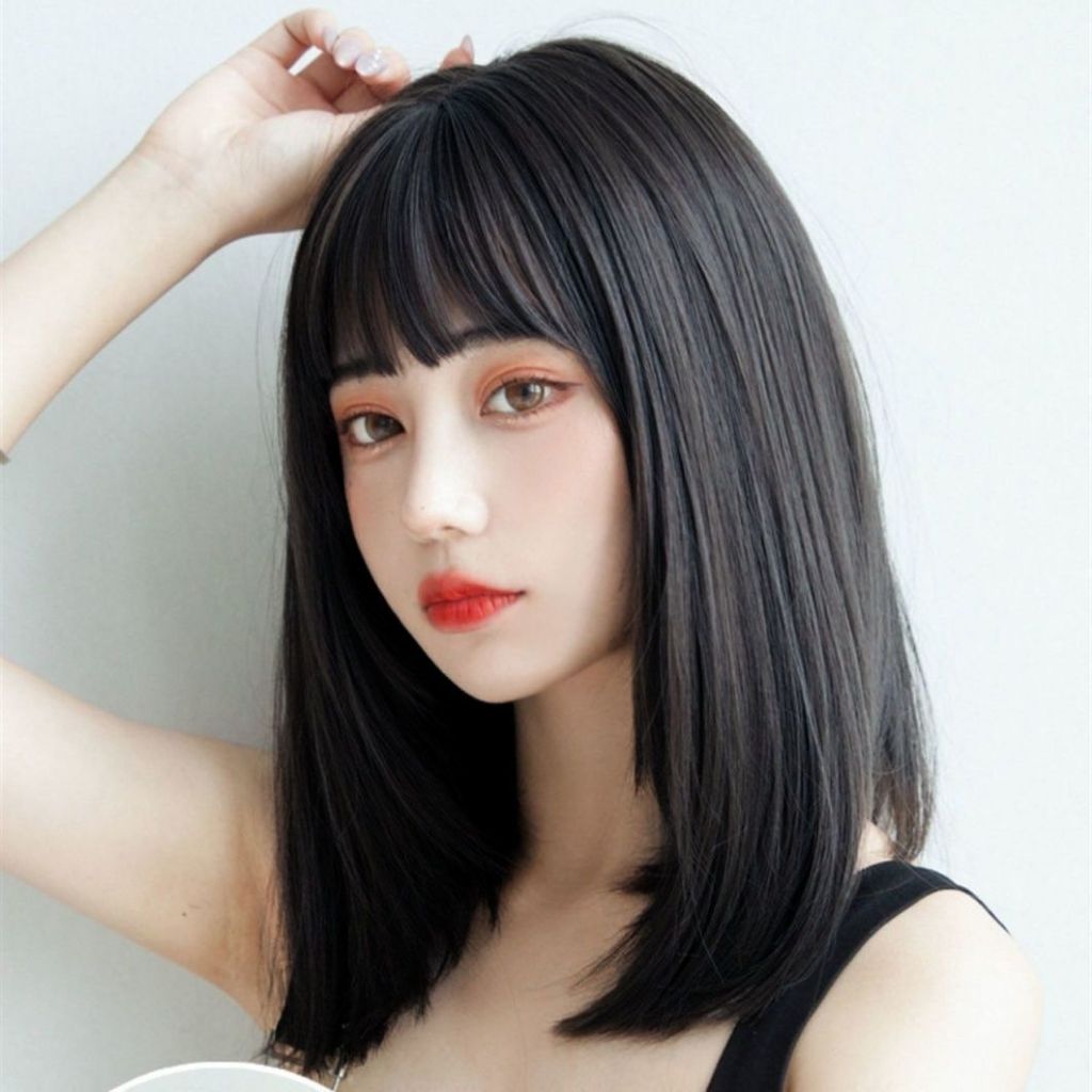 Wig untuk rambut palsu wanita dengan rambut sedang dan panjang, kepala penuh tulang selangka realistis rambut lurus pend