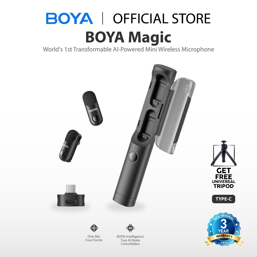 BOYA Magic Wireless Mini Microphone 4 Form-in-1 Mic 7g Lightweight AI Noise Reduction 48kHz/24bit