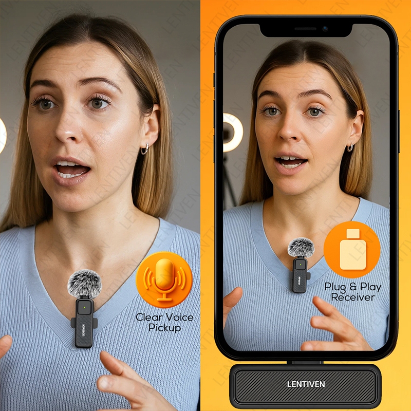 WANKEI LENTIVEN Wireless Microphone Mic Wireless Clip On Microphone Mikrofon Lavalier HP Plug & Play Garansi 1 Tahun SE8