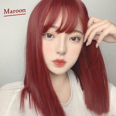 Wig Full Lace Rambut Palsu Wanita Panjang Berponi Korean Version Wig Long Half High Quality