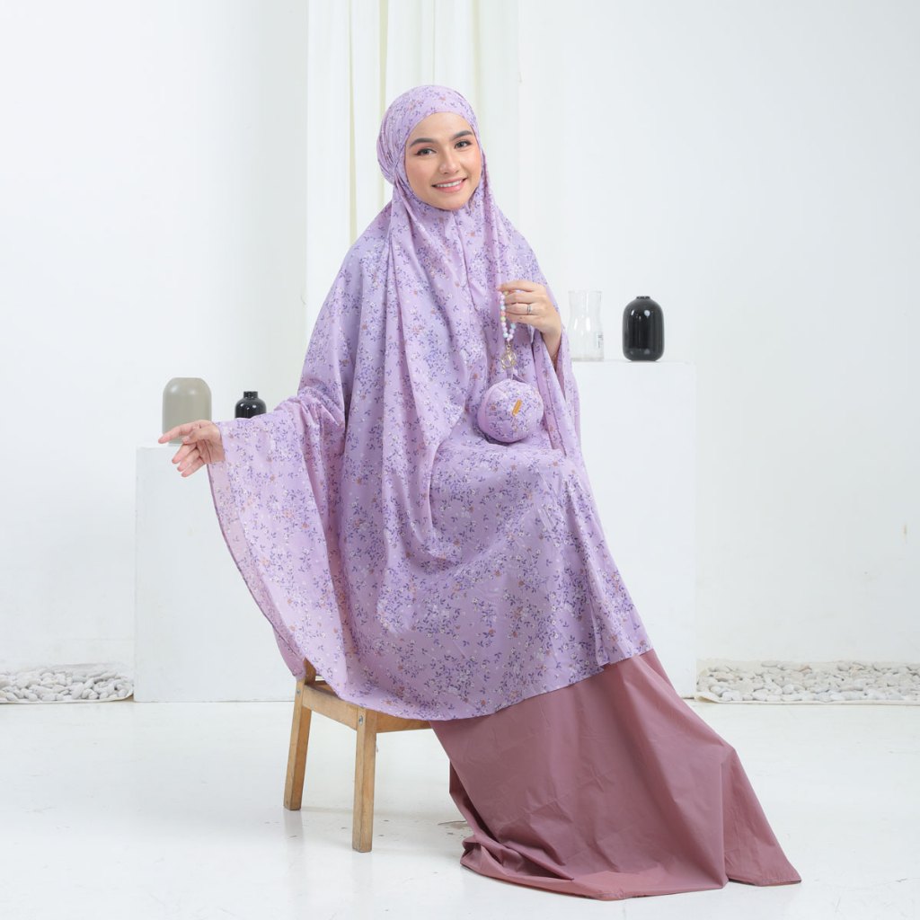 [Mall] Mukena Dewasa Traveling Mini Pouch Resleting 2in1 Parasut Korea Motif Kombinasi Polos Premium