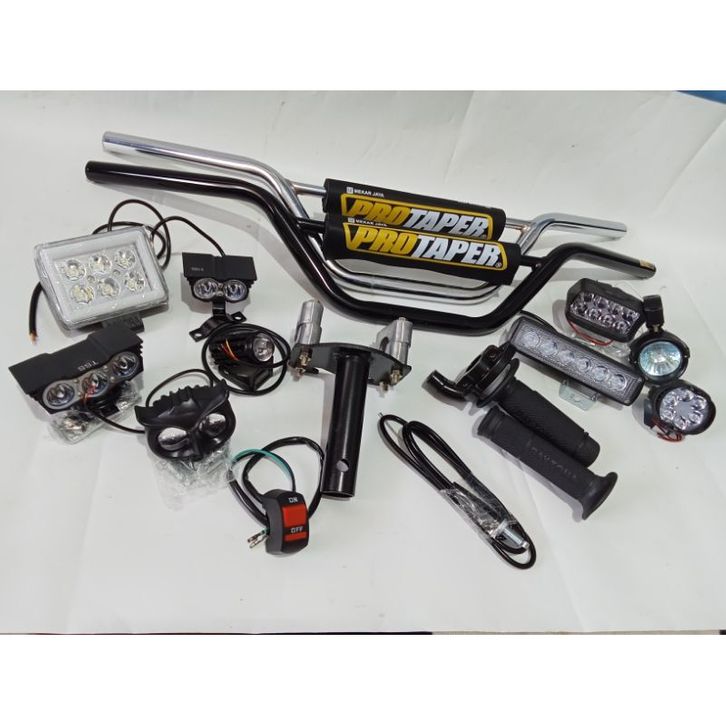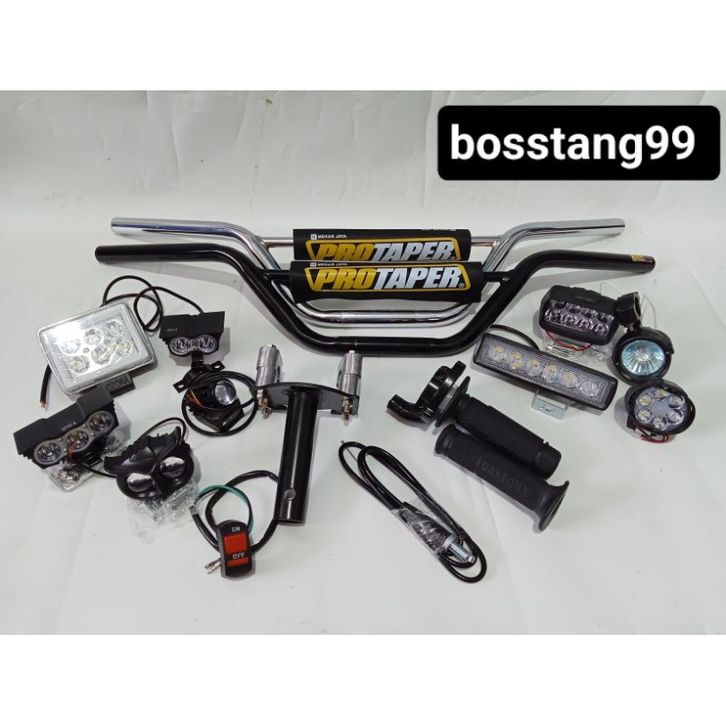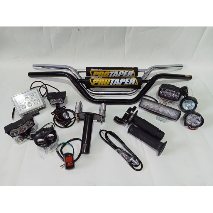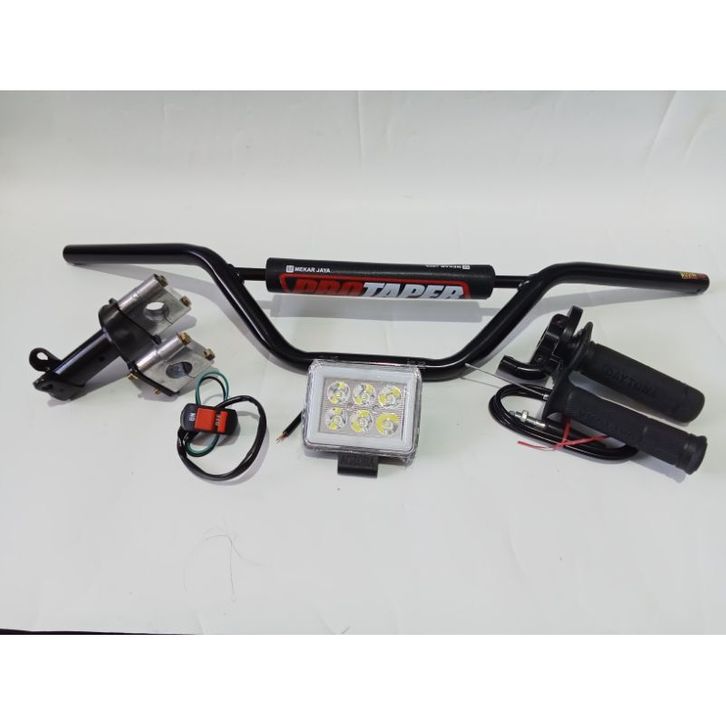 paketan stang trail + dudukan stang+ gasspontan POLOS + lampu LED pilih aja+ gratis saklar on off
