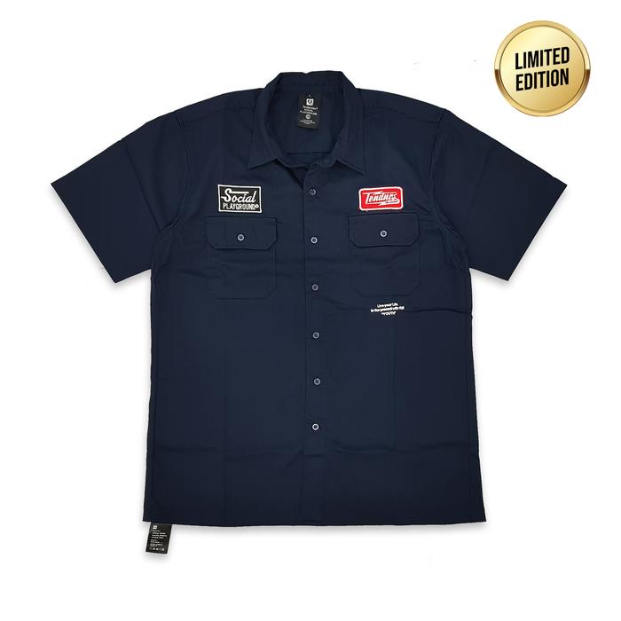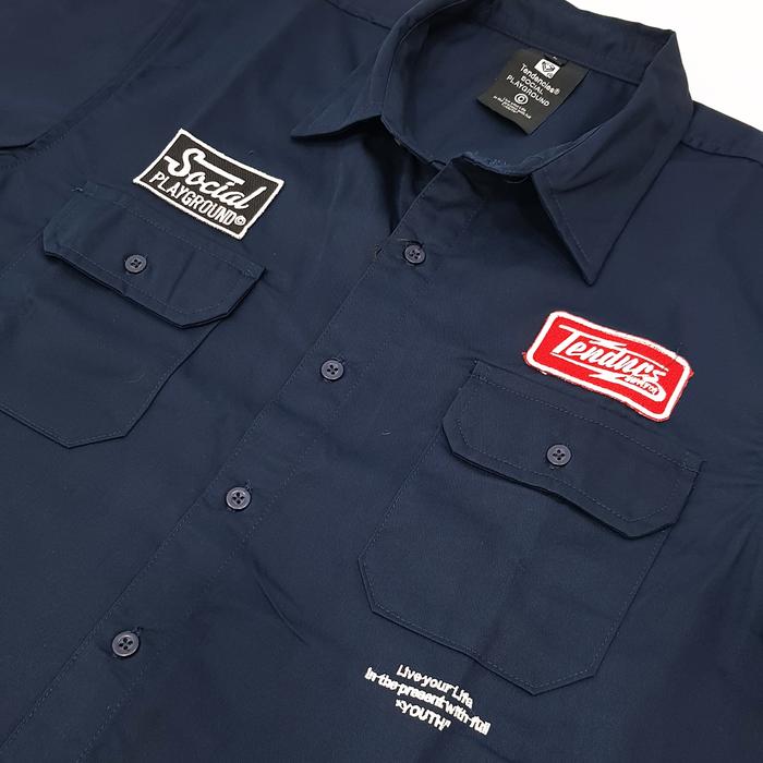 TENDENCIES Social Garage Work Shirt Navy Kemeja Kerja Kemeja Pria Lengan Panjang Pendek Jumbo Polos