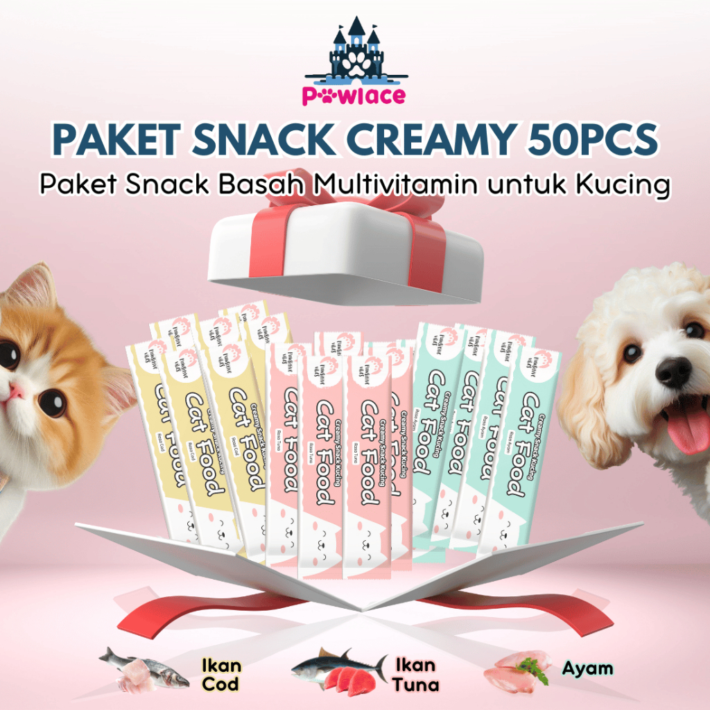 Snack Creamy Kucing Isi 50pcs - Cat Food - Paket Cemilan Vitamin Kucing Basah Murah - Makanan Basah Kucing