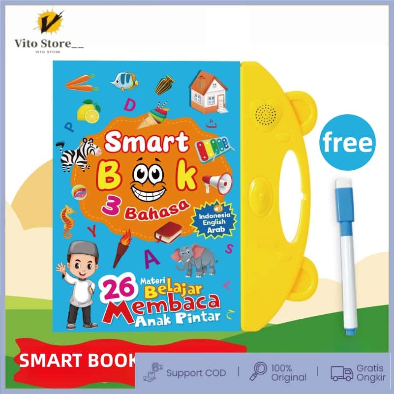 Smart Book 3 Bahasa 26 Materi Belajar / Buku Edukasi Anak Pintar / Bahasa Indonesia English Arabic / Buku Edukasi Suara