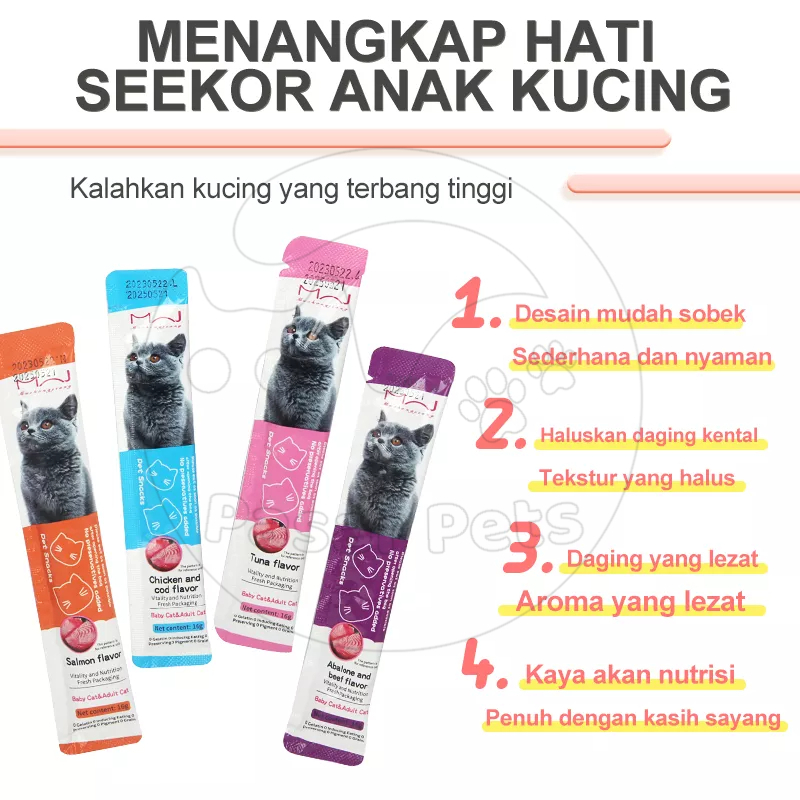 10pcs/50pcs Cemilan Kucing Snack Kucing 16g bergizi Cat Food Strip Stick Treats Cemilan Hewan