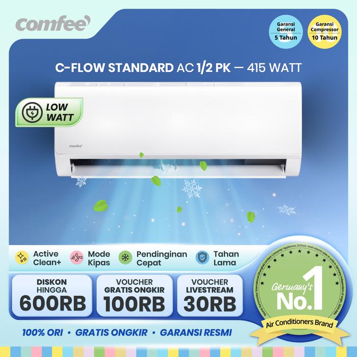 Comfee Ac C-Flow Standard 1/2 Pk (Unit Indoor & Outdoor) - Cfs-05Fst - Low Watt, Ac Hemat Listrik, Anti Korosi, Active C