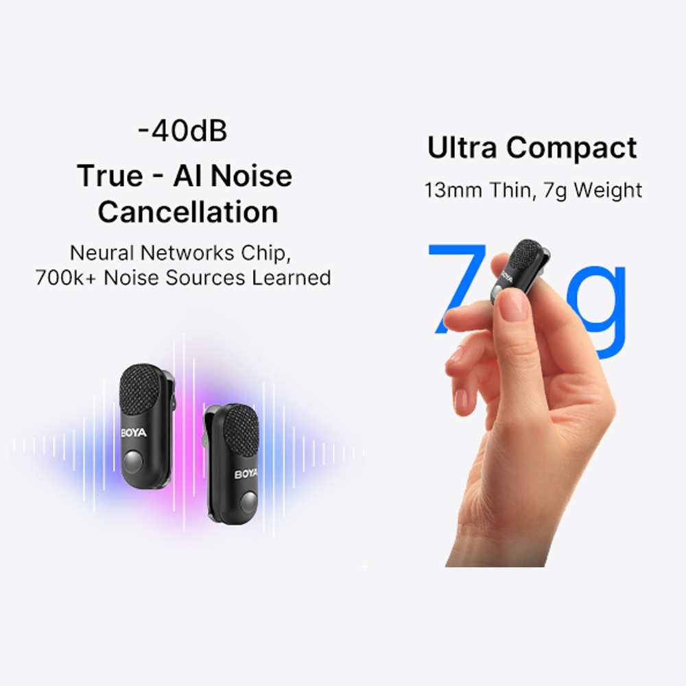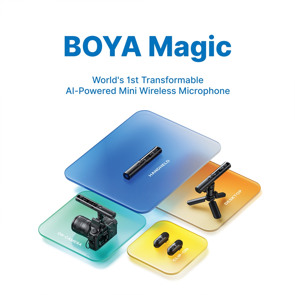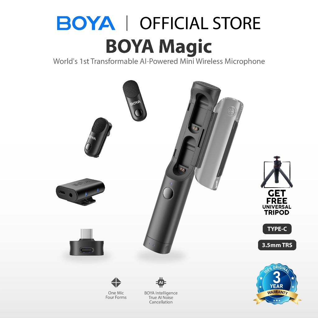 BOYA Magic Sistem Mikrofon Transformable AI-Powered Mini Wirreles Microphone All In One Dengan Konektor TRS Type-C MFi L