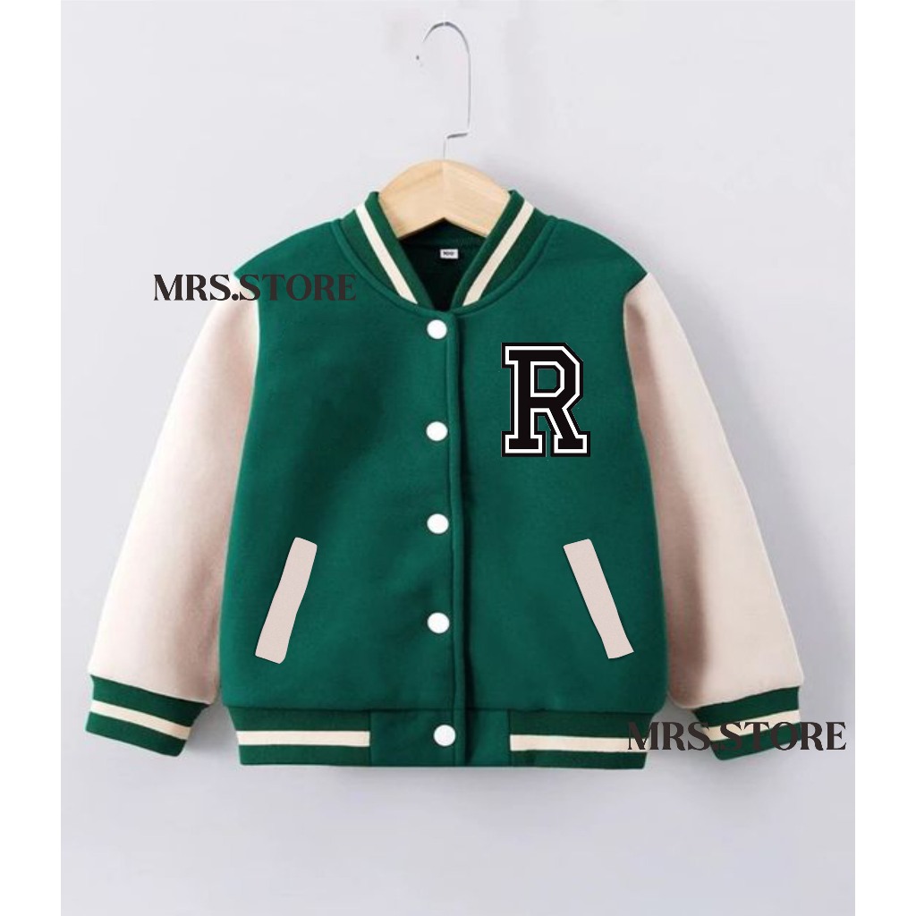 Jacket Baseball varsity Anak Inisial A&R Perempuan Laki Laki Umur 2 3 4 5 6 7 8 9 10 11 12 Tahun Full Sablon DTF Premium Jacket varsity