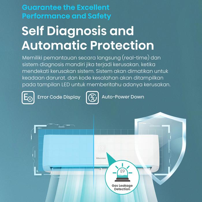 Hisense-An05Ceg-0.5Pk Terhemat Ac 1⁄2 Pk Full Set -Dingin Kilat-Cocok Kamar Tidur-Pendinginan Super Cepat 3 Menit Sejuk-