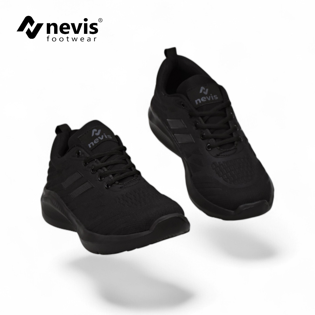 NEVIS Sepatu Pria Jumbo Big Size 39-49 Hugo Cross Sport Sneakers Casual Olahraga Running Lari Full Black Hitam Polos