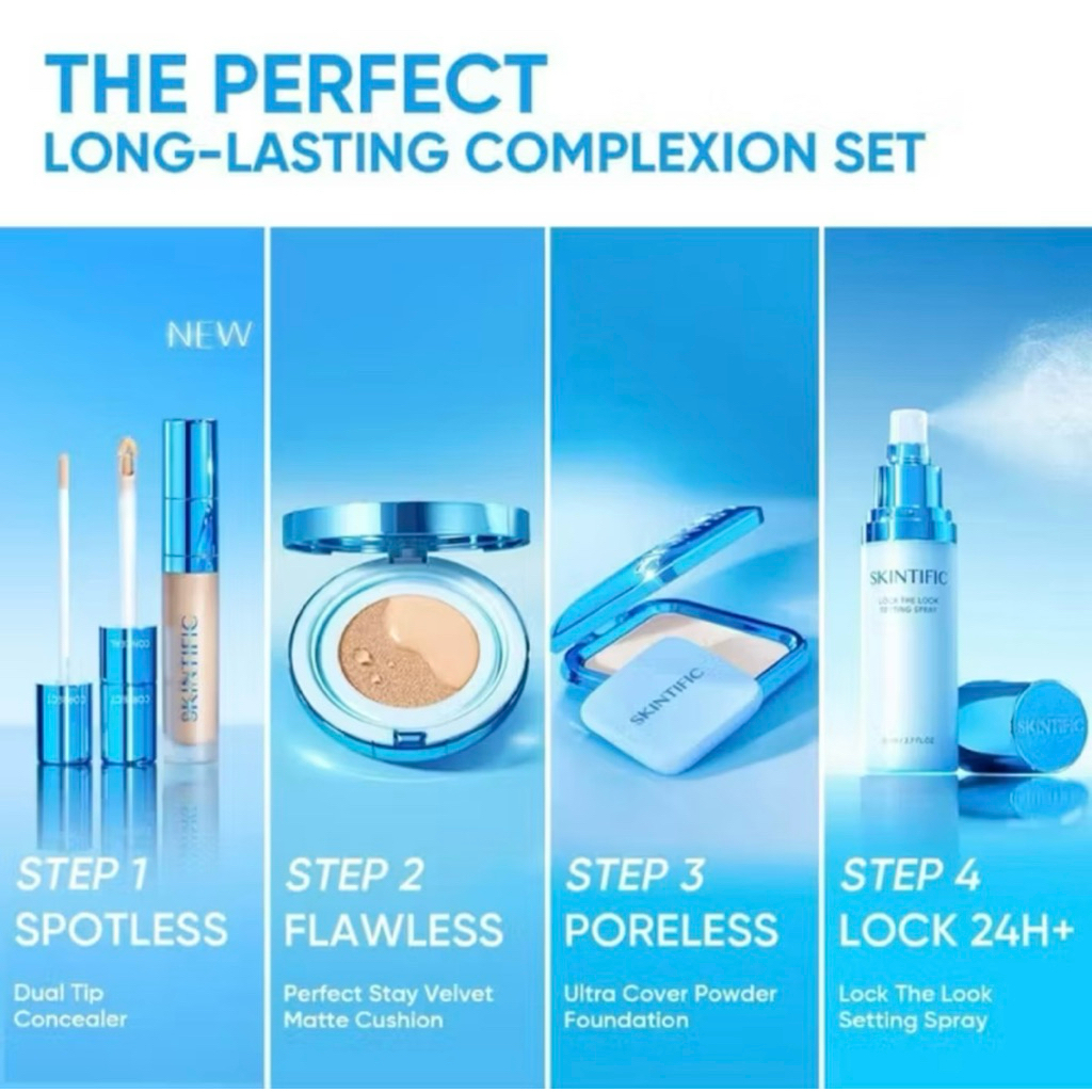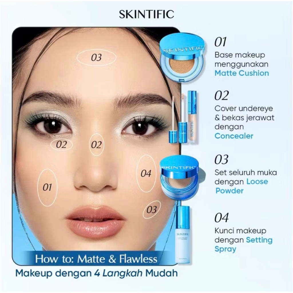 SKINTIFIC Make Up Set Lengkap | Cushion + Concealer + Two Way Cake + Setting Spray | Paket Makeup Flawless