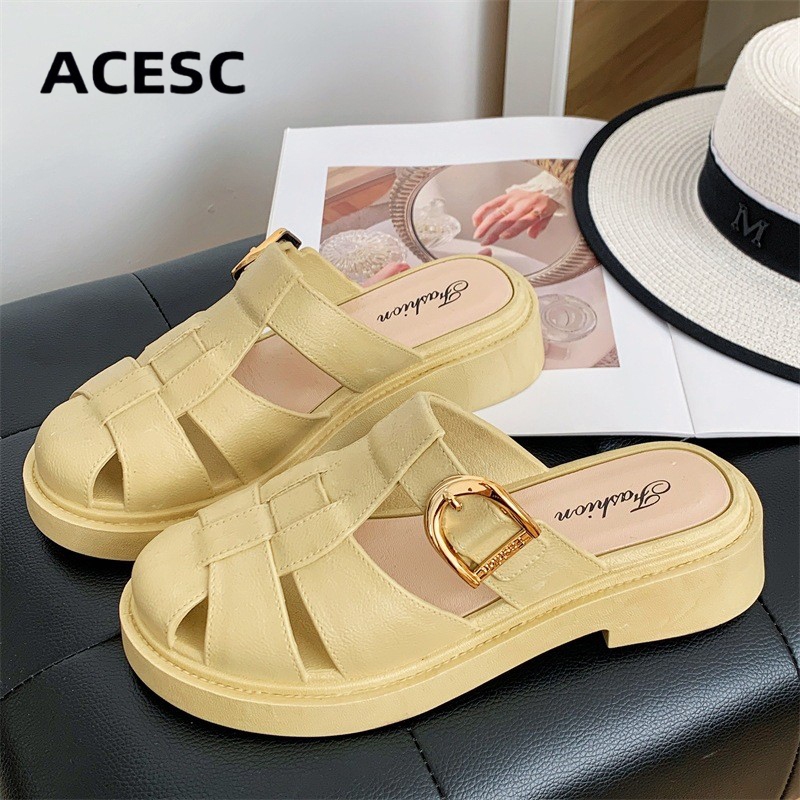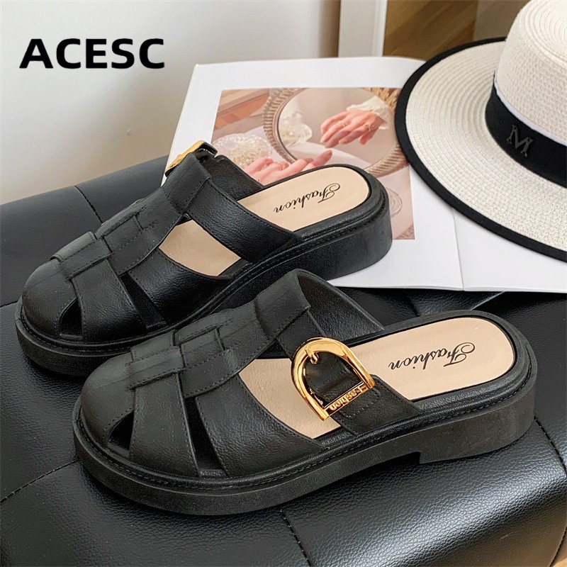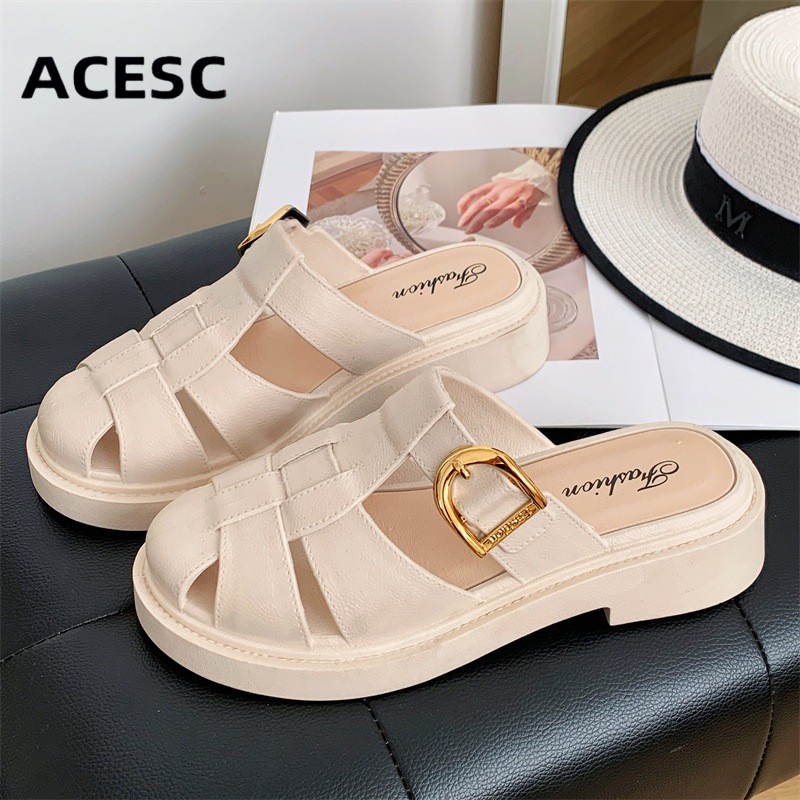 ACESC Sandal Slop Tulang Wanita Pengikat Samping Korean Style