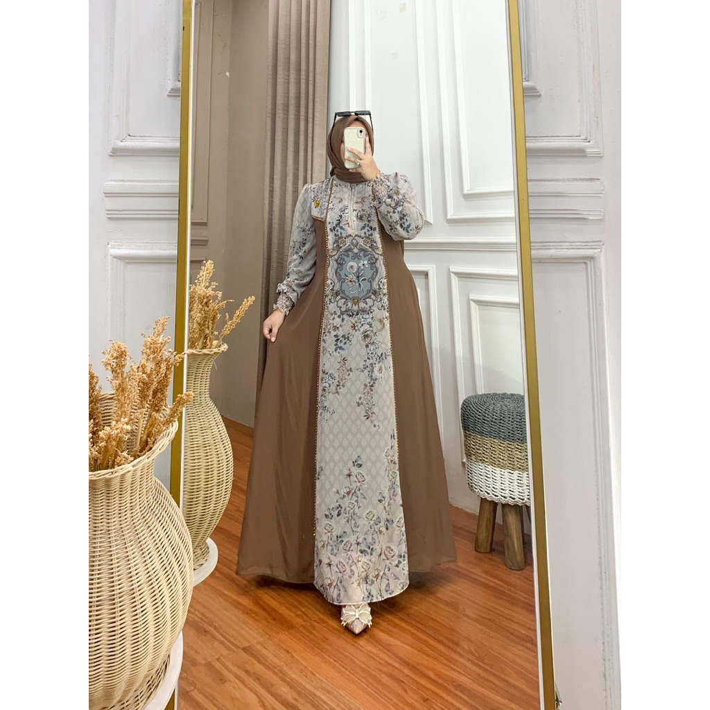 ALUNA DRESS Gamis wanita set hijab Seruty printing kekinian Simple Elegant Lebaran 2026