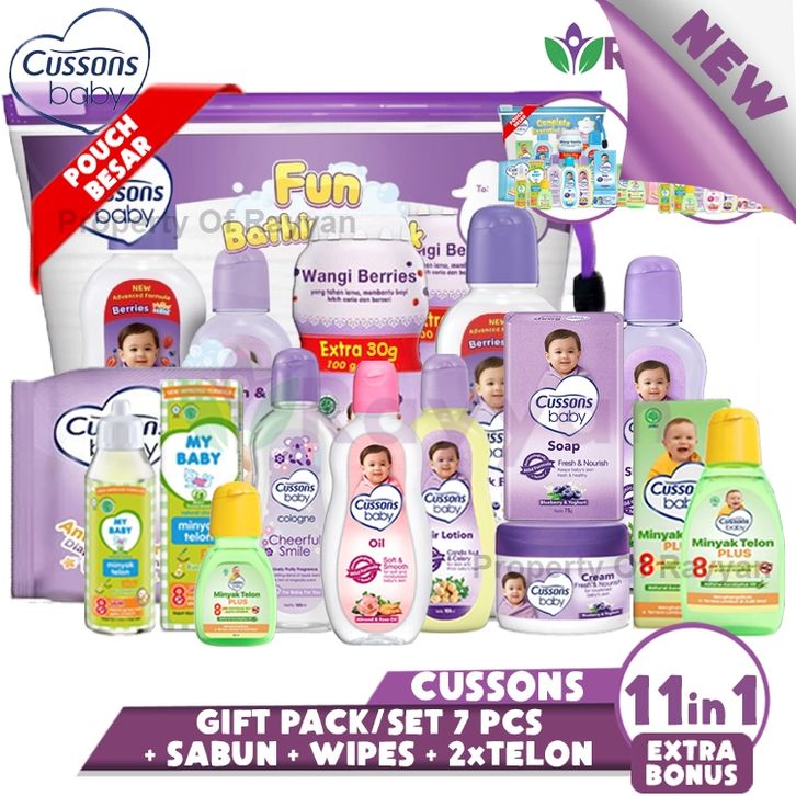 1 Set Sabun Bayi Cussons Baby Set Pack 11in1 Fun Bathing Complete Pack Plus Telon Cussons Baby Gift Set Large