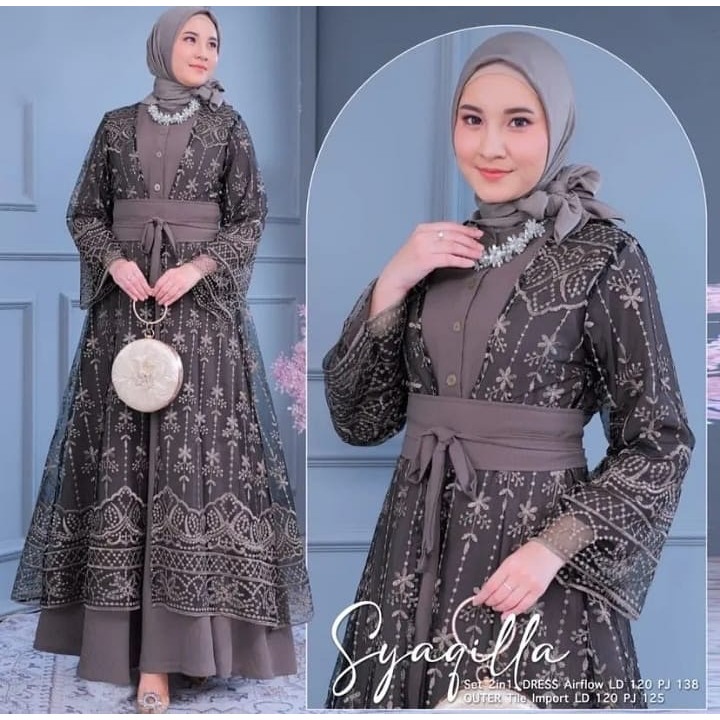 ( BEST SELLER ) ABAYA TURKEY BROKAT MEWAH SYAQILA SET DRESS TERBARU GAMIS CERUTI BEBYDOLL MIX BROKAT
