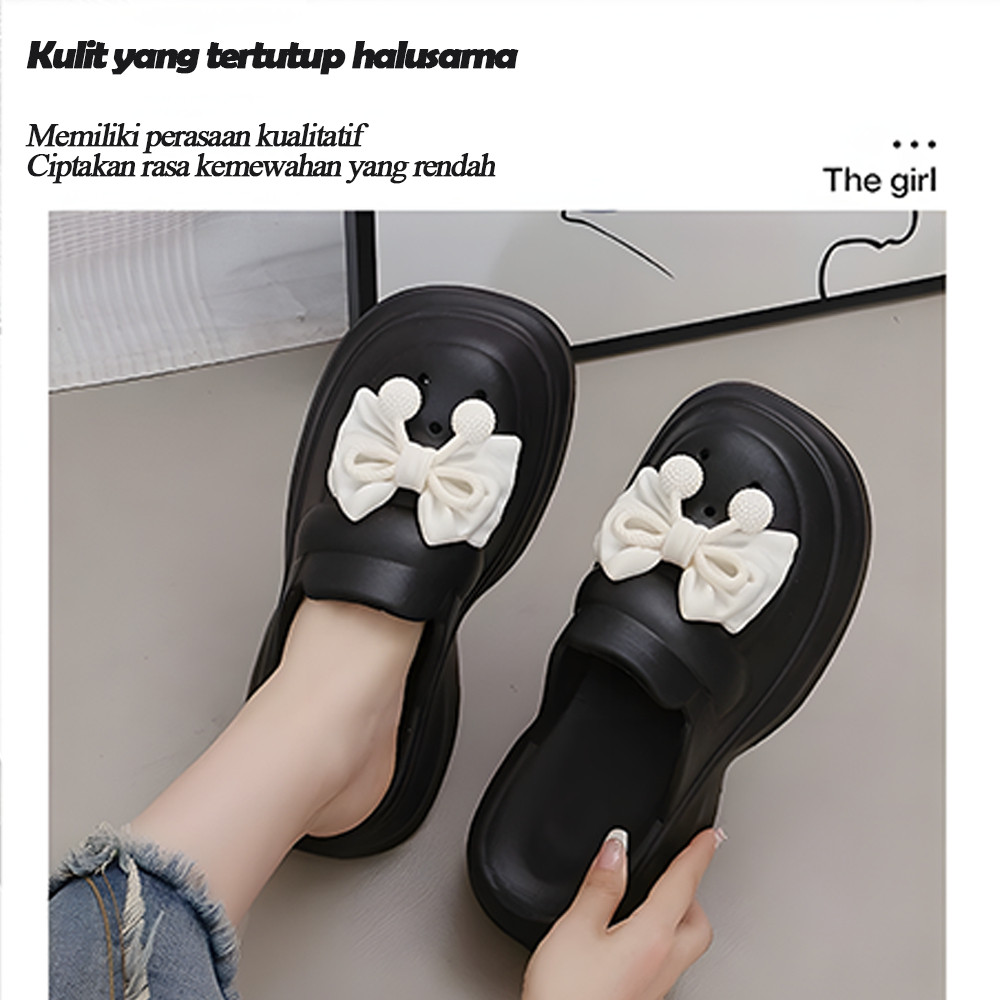 Sandal Slop Wanita Kekinian Sandal Kodok Wanita Fuji Sandal Baim Tali Pengikat Wedges Anti-selip