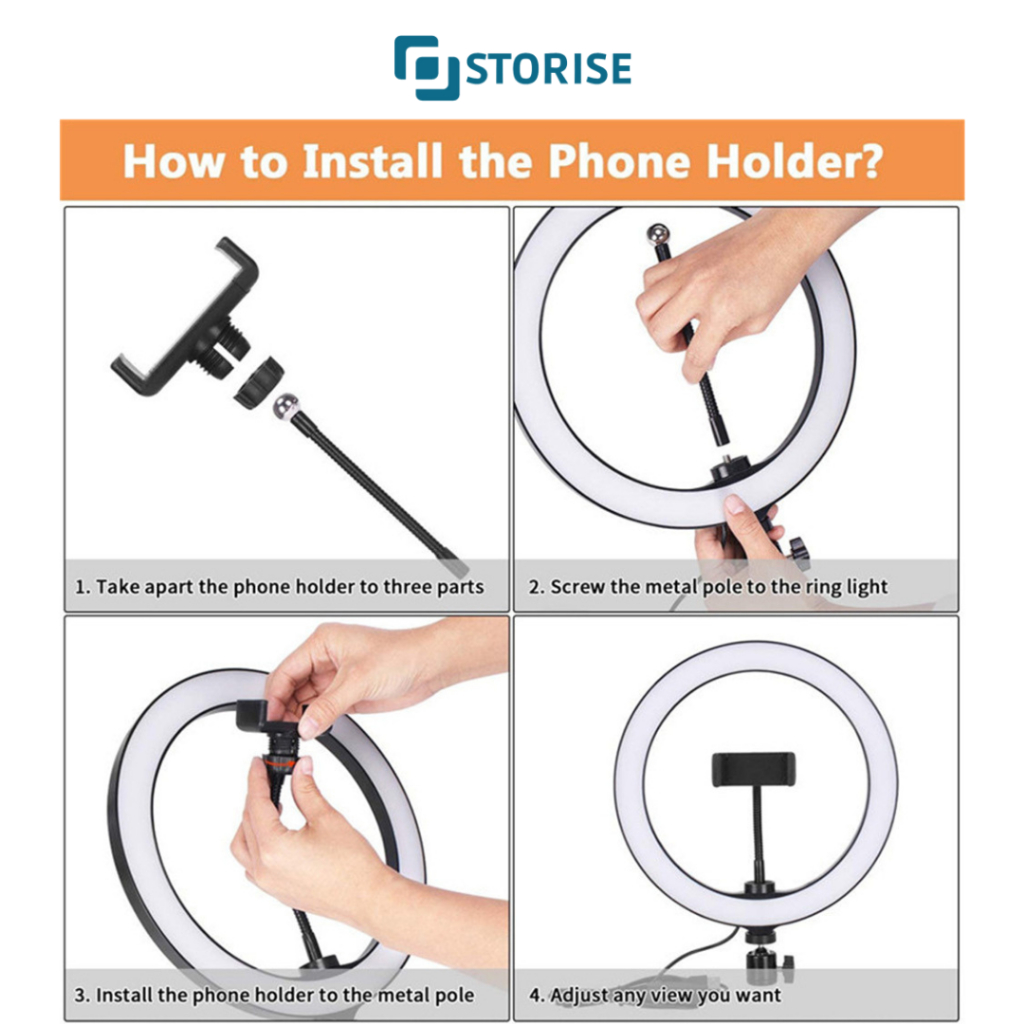 [Mall] Ring Light LED 26CM Storise Lampu Live Streaming Ringlight Konten Tripod 20 cm Lighting Studio Potografi Mini