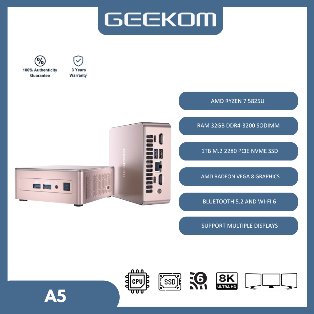 Geekom Mini PC Gaming A5 AMD Ryzen 7 5825U RAM 32GB DDR4 1TB SSD Windows 11 Pro Upgradeable PC