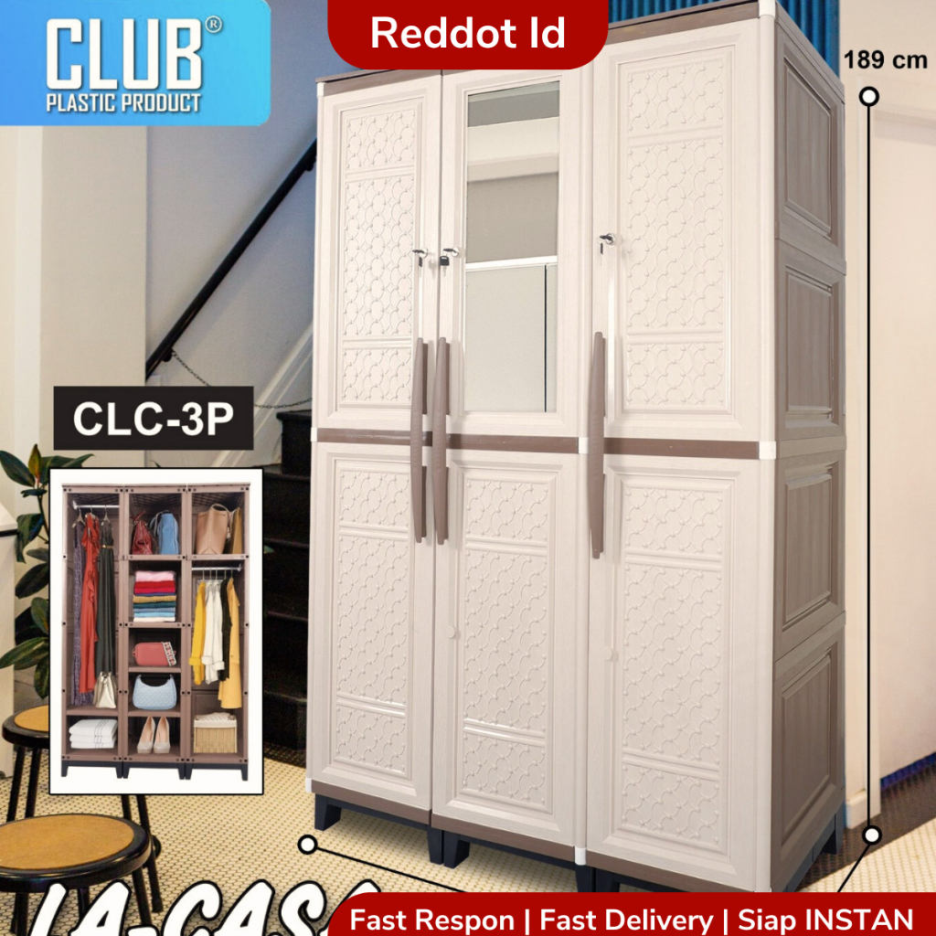 La Casa Lemari Pakaian Plastik 3 Pintu Cermin 120×52×189 cm Anti-Air dan Anti-Rayap Bongkar-Pasang