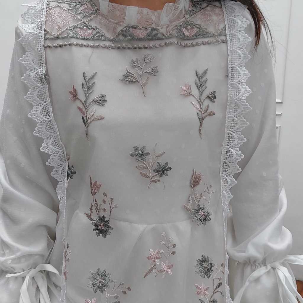 Be.gracious-Anesya dress / dress kondangan terbaru / gamis wanita terbaru/ gamis brukat putih hitam