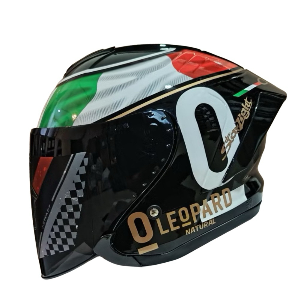 Helm Leopard Black Doff Half Face Original SNI + Paket Ganteng Motorcyle