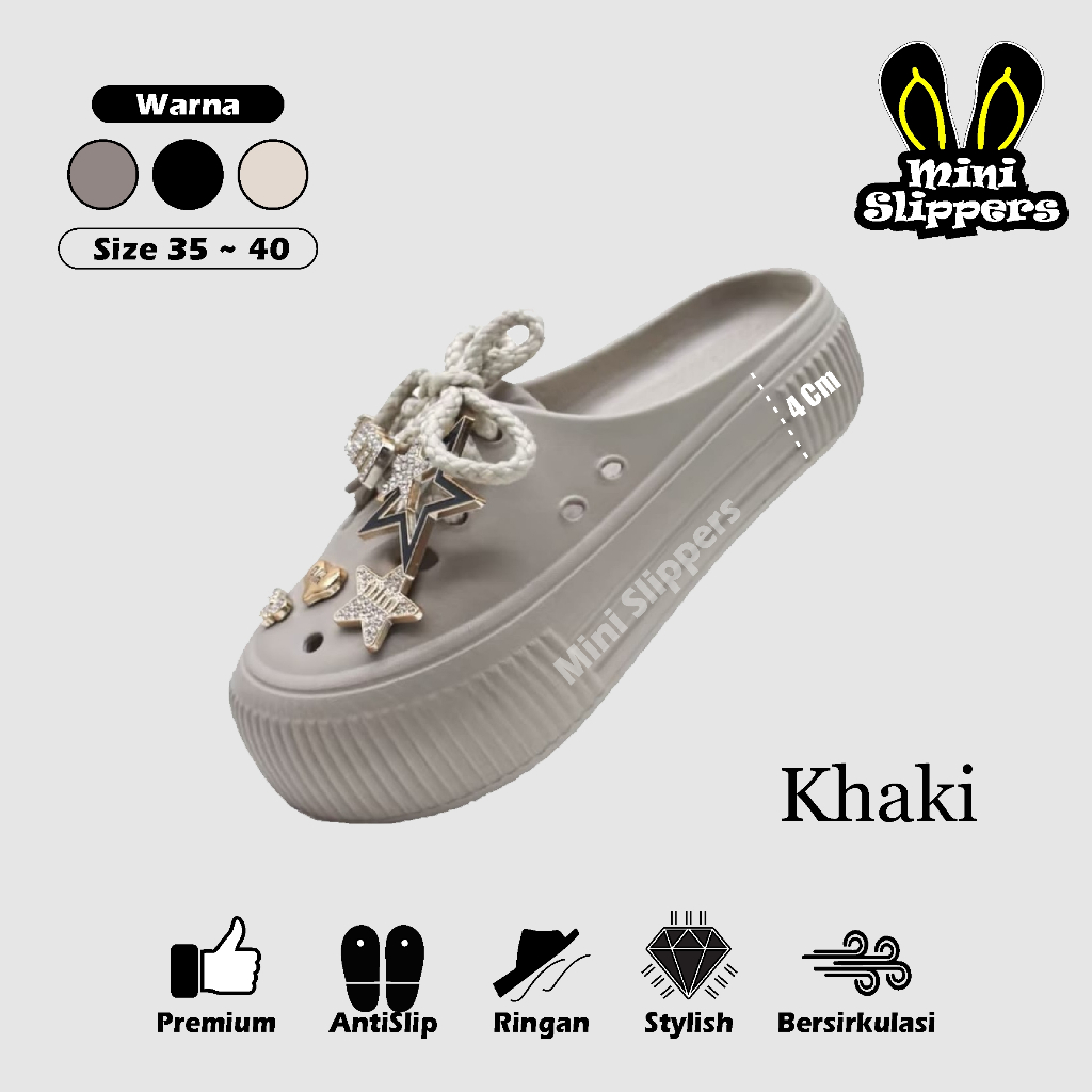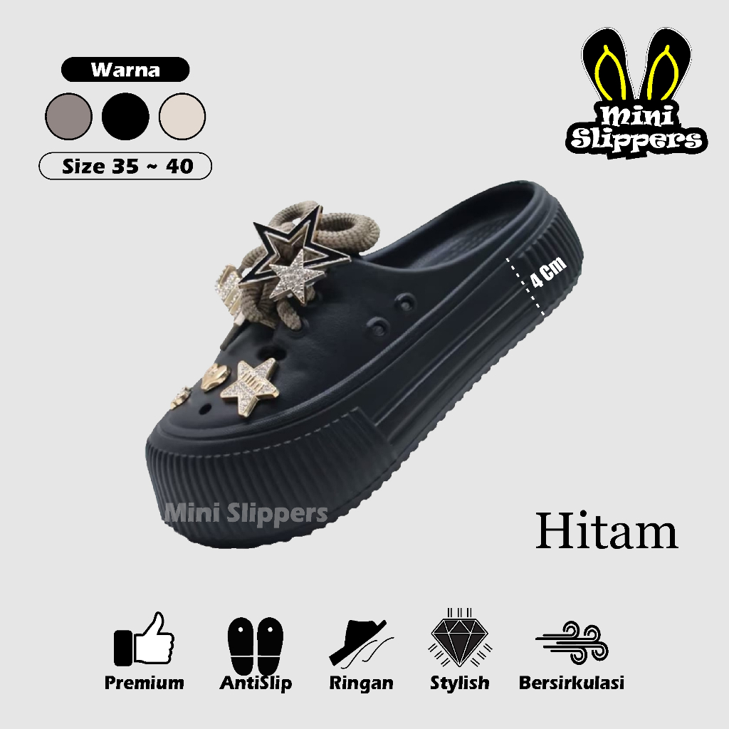 Sandal Selop Wanita Tinggi 4cm Bahan Karet EVA Anti Licin Motif Tali Bintang Terbaru