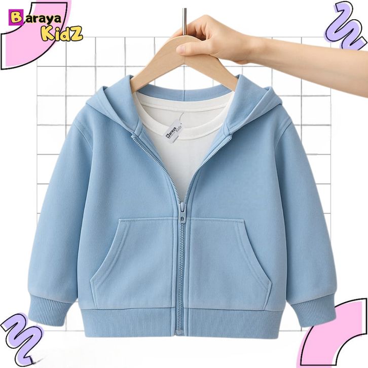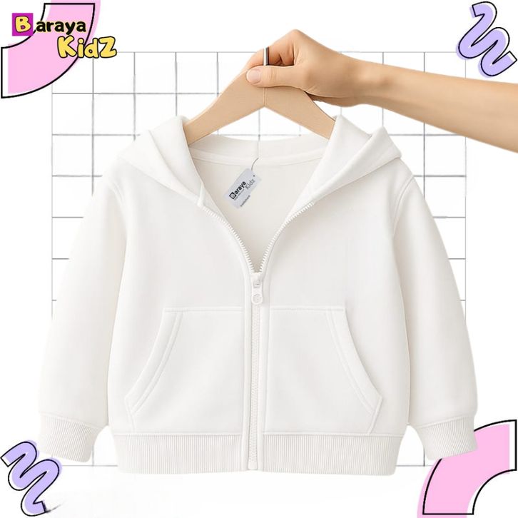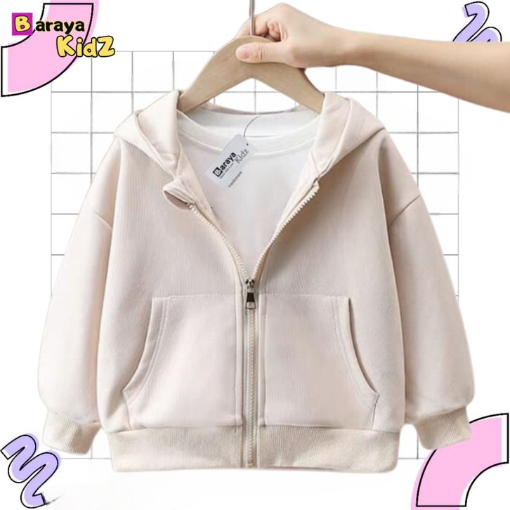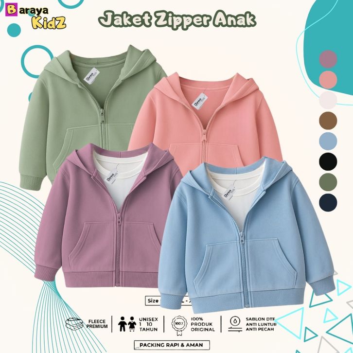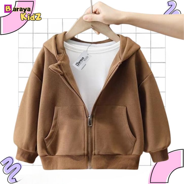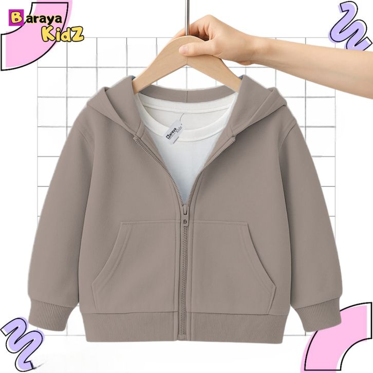 Jaket Anak Hoodie Polos Unisex Zipper Polos anak Laki laki Perempuan Usia 1-8 Tahun Bahan Flecee Terbaik