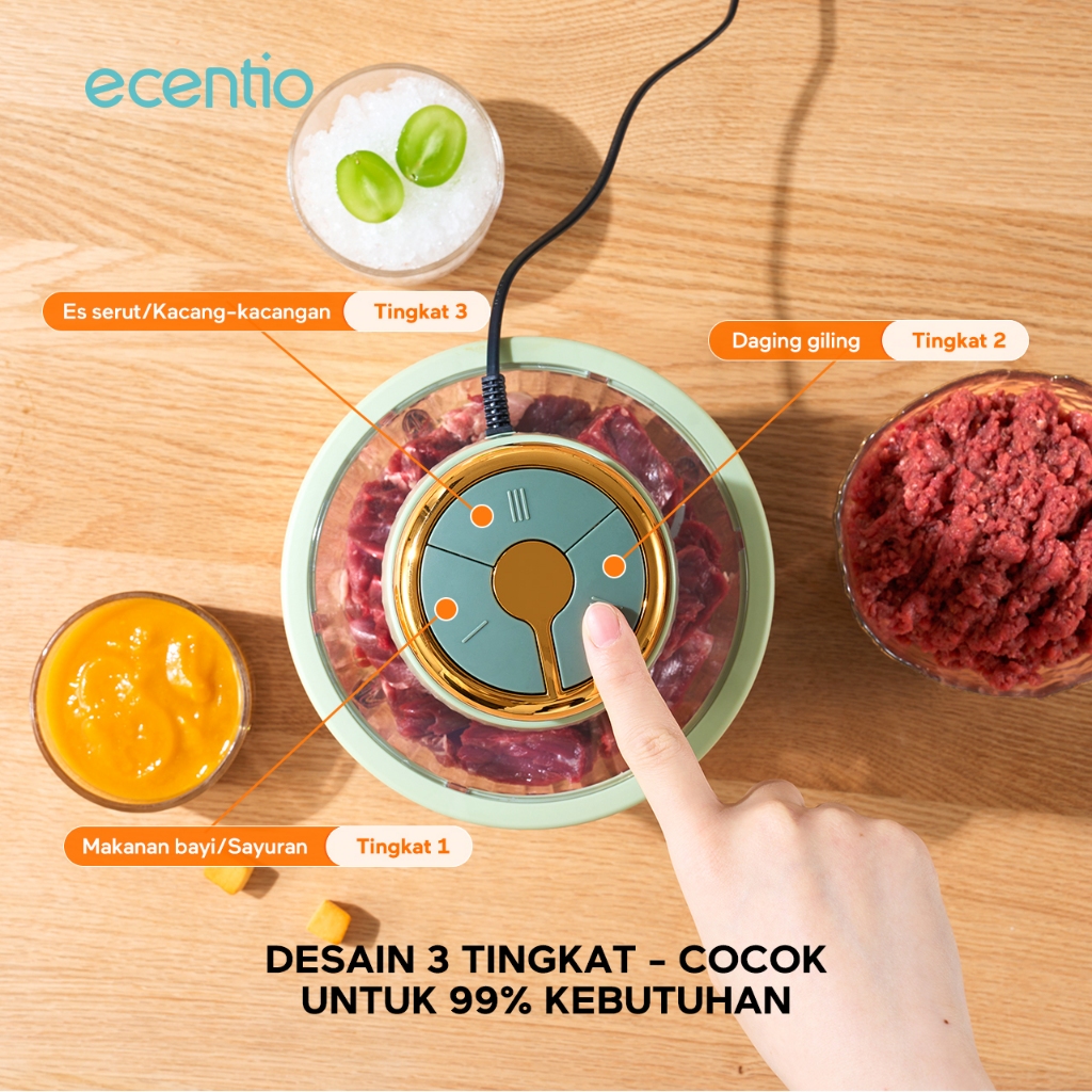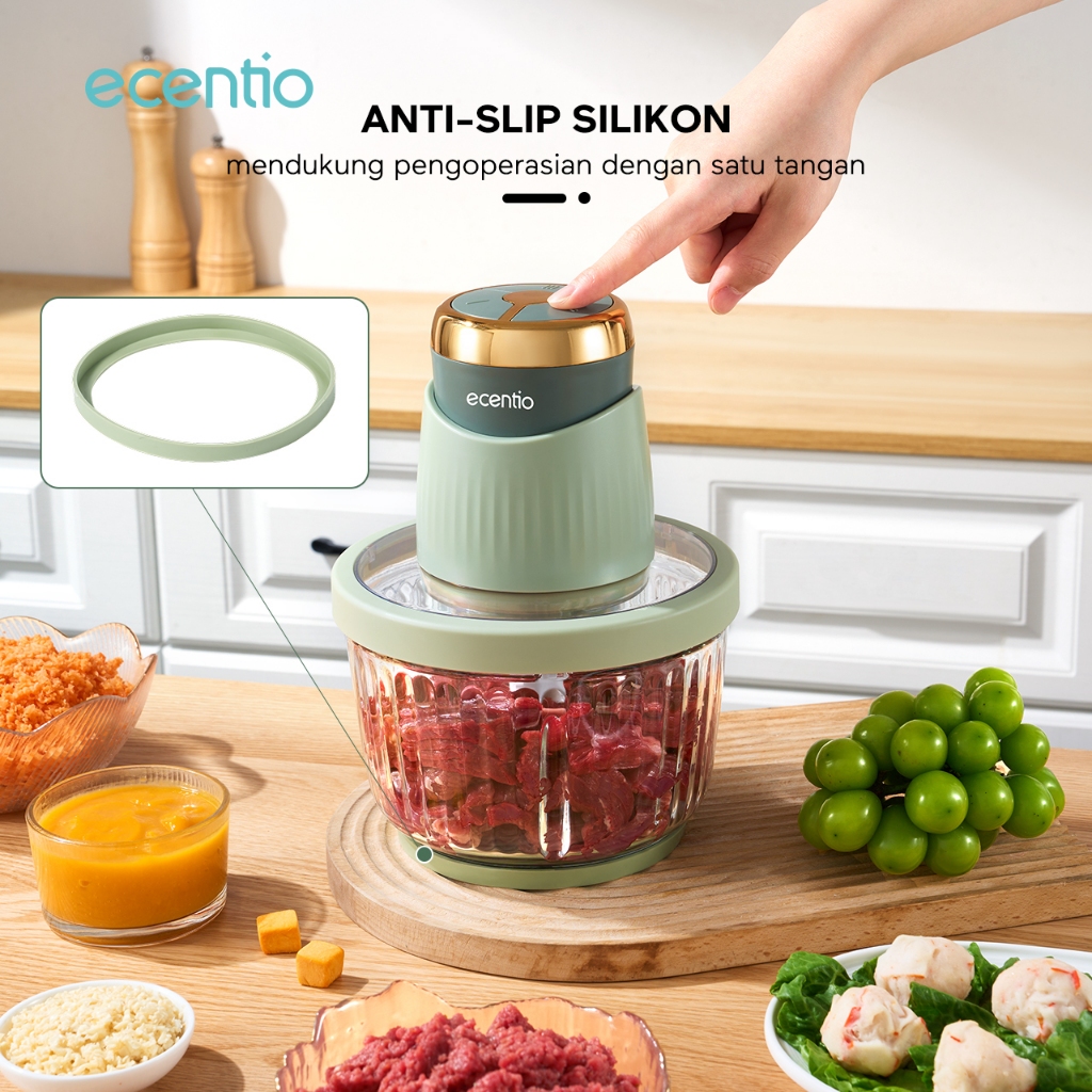 ecentio 3 Kecepatan Penggiling Daging 2.5L Food Chopper 4 Mata Pisau Kaca Food Processor 250W Food Grade Mesin Giling Da