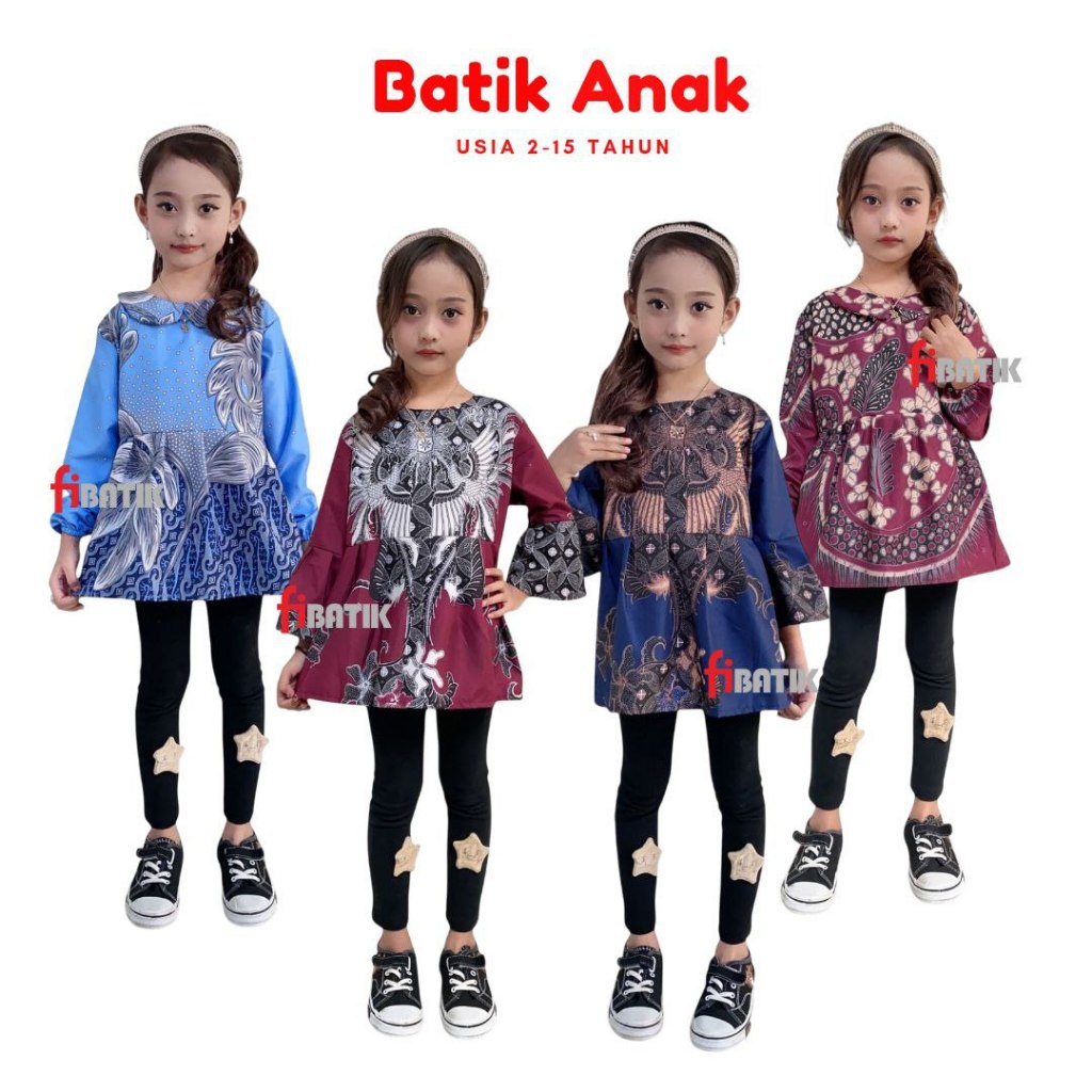 Baju Batik Anak Perempuan Lengan Panjang 2-15 Tahun Baju Batik Sekolah Hari Batik Nasioanal
