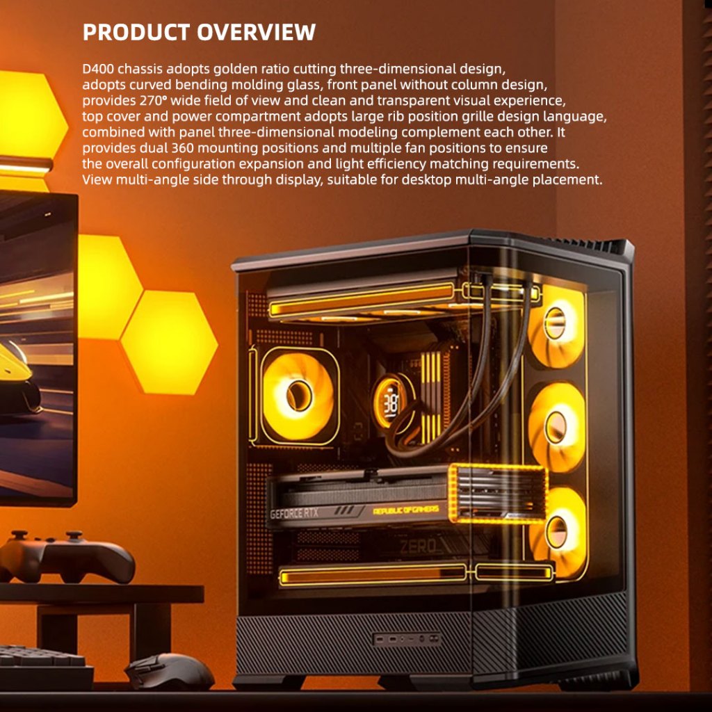Jonsbo D400 Middle Tower ATX Case Tempered Glass | Casing CPU Komputer Gaming Hitam Putih