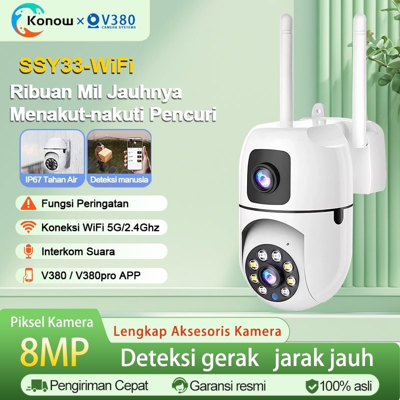 Konow V380 pro CCTV Dual camera 8MP IP66 tahan air penglihatan malam inframerah Pelacakan Bergerak Alarm otomatis Pemantauan Keamanan Rumah
