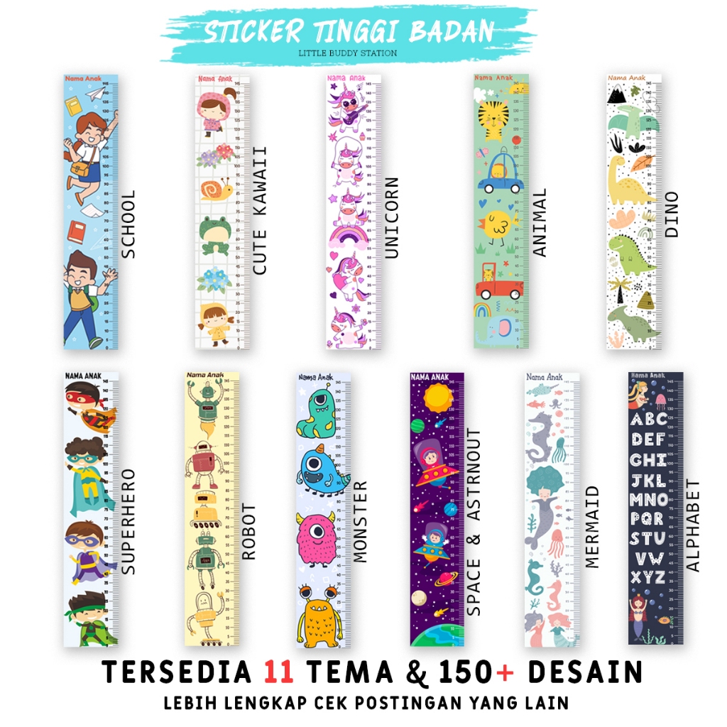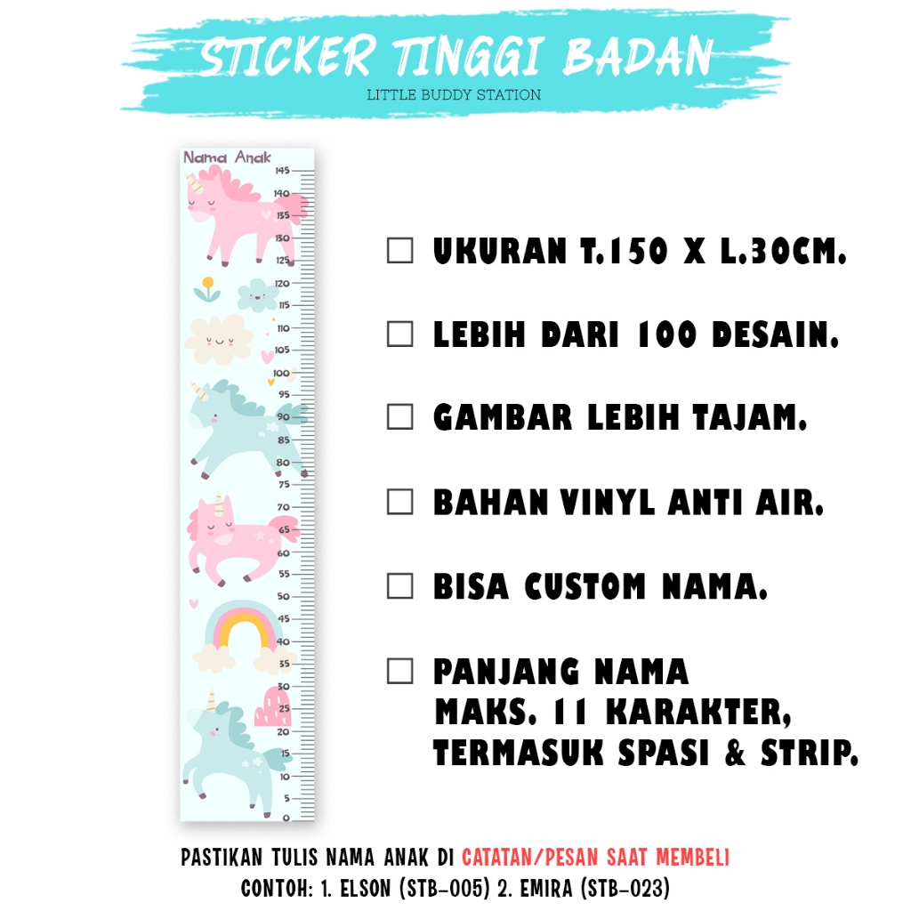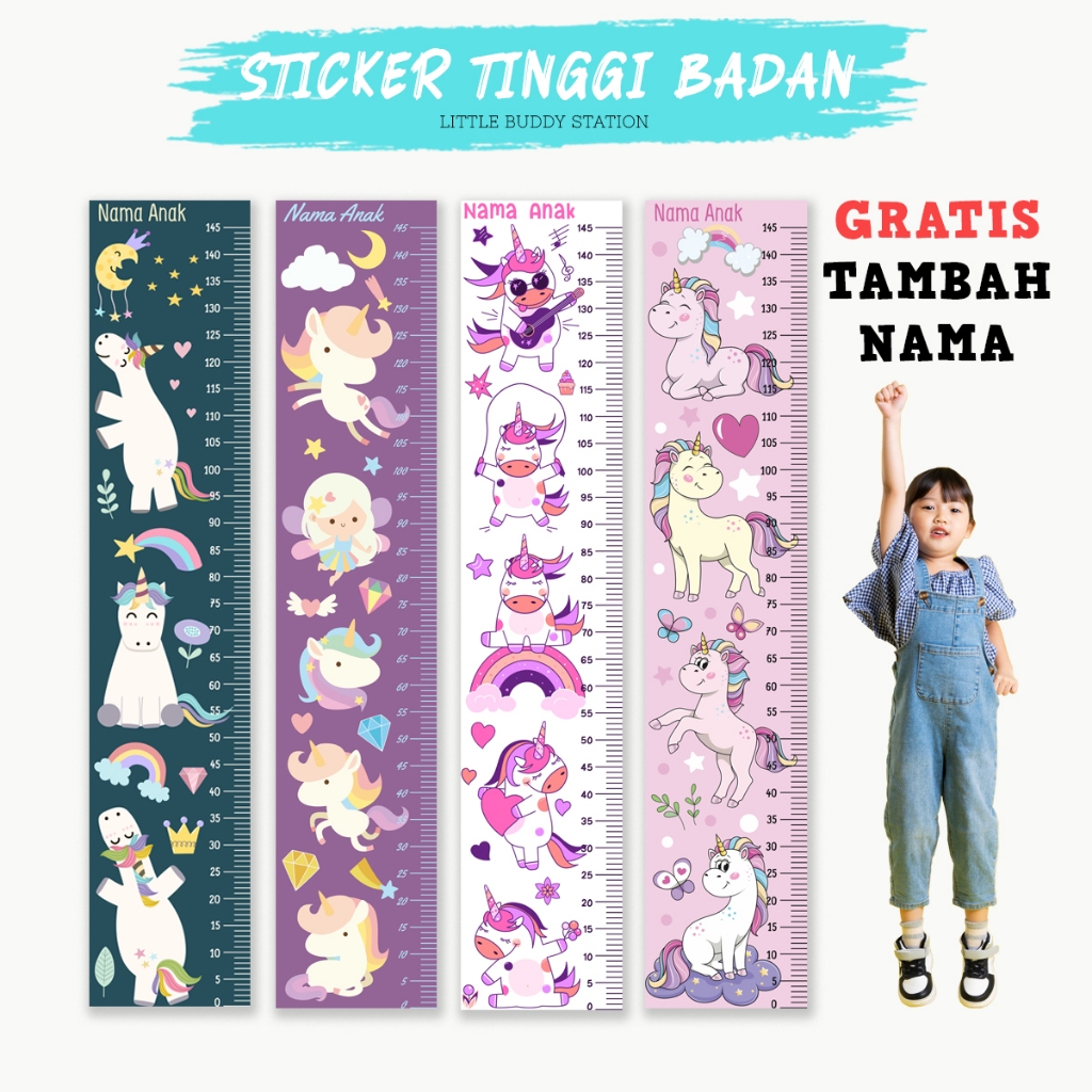 Stiker Tinggi Badan Anak Dinding Custom Nama - Growth Chart Aesthetic Motif Unicorn Kuda Poni Wall Sticker Dekorasi Kama