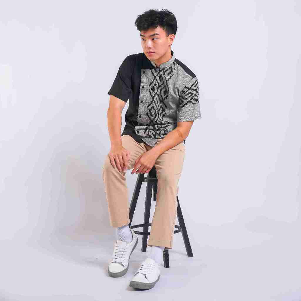 Kemeja Koko Pria Lengan Pendek BoeNoe Abimantra Kerah Shanghai Tenun Songket Polos Katun Toyobo Lebaran Ramadhan