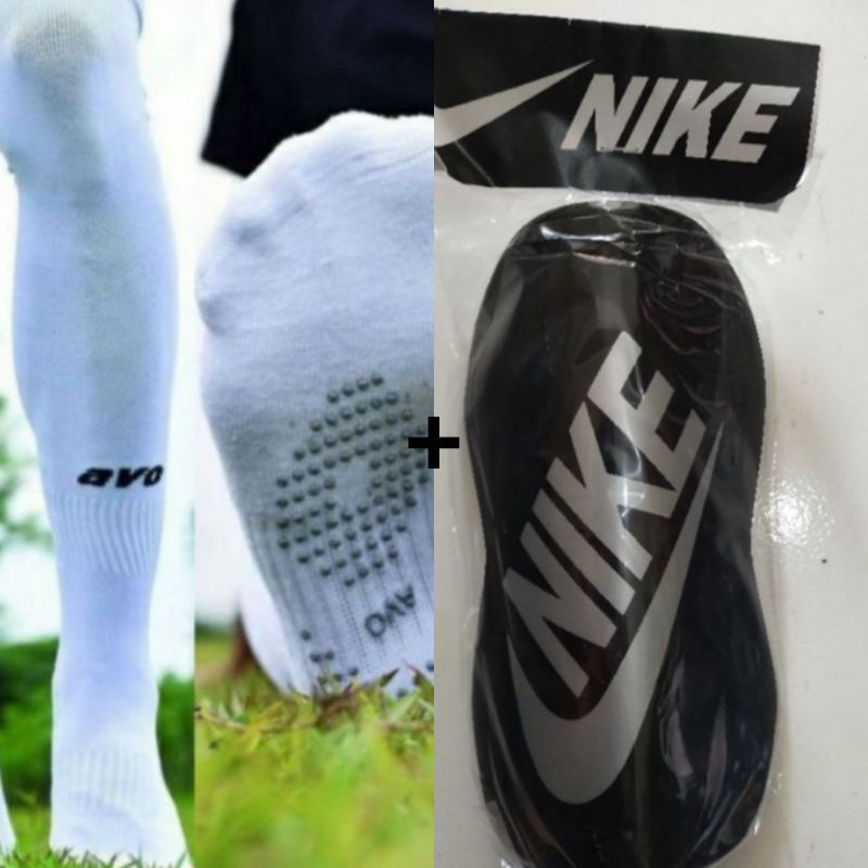 Paket Kaos Kaki Olahraga Sepak Bola Futsal Panjang Selutut R8 AVO Original + Deker Pelindung Tulang Kering Murah