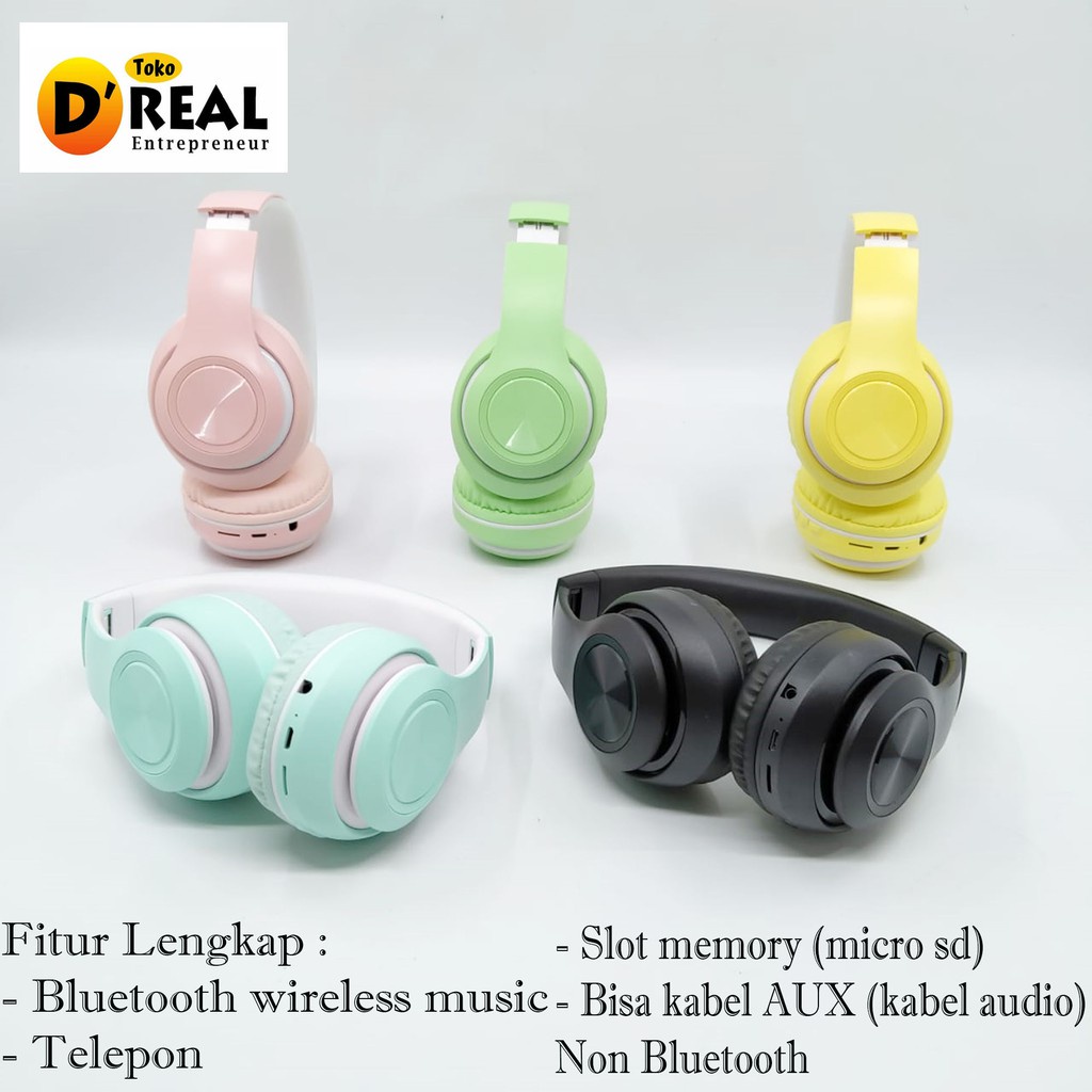 Headphone Bando Wireless Inpods Boom Macaron Game Online Bass P33 Suara Jernih Nyaman Dipakai