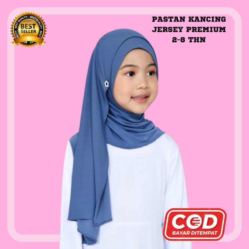 Jilbab instan Pashmina kancing Jersey premium 2-8 tahun Kerudung anak