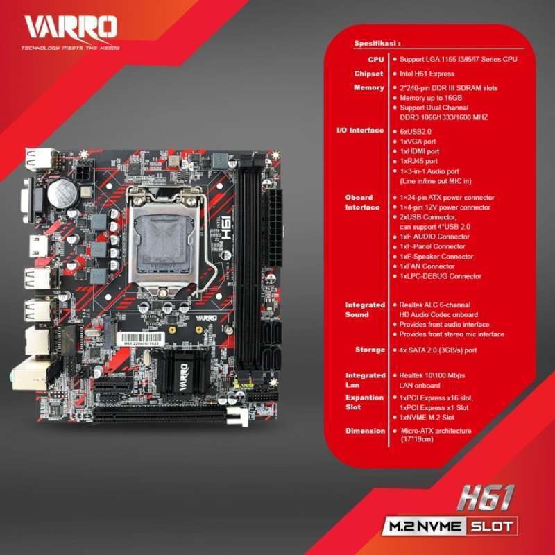 Motherboard H61 Varro Chipset B75 Socket 1155 Nvme Garansi 1 Tahun
