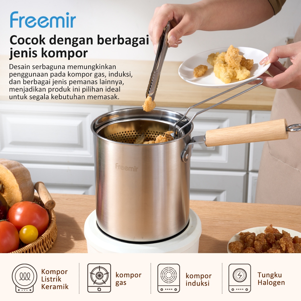 [OFFICIAL] freemir 4 in 1 Multi Deep Fryer Panci Penggorengan Rebus Stainless Steel Saringan Capitan Klip Makanan Panci Rebus Multifungsi GARANSI