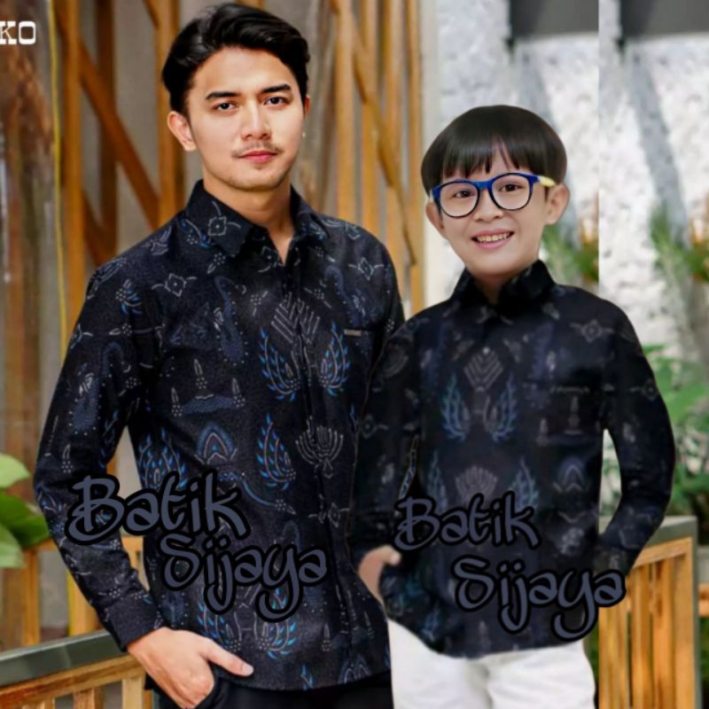 Kemeja Batik Motif Mataram Biru Batik Anak Laki-Laki Lengan Panjang Batik Ayah dan Anak Cowok Warna Hitam Biru Navy