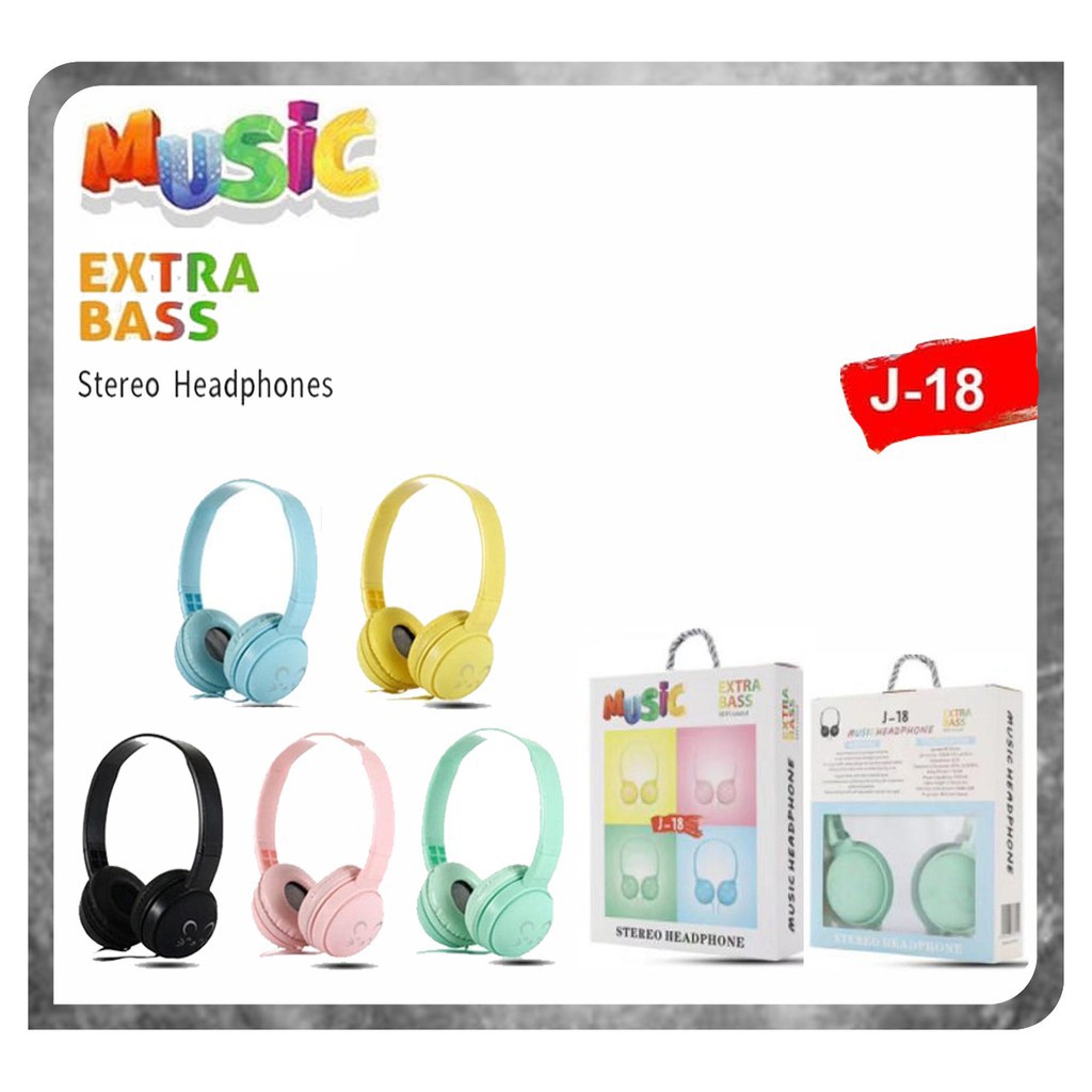 Headphone Macaron J18 Extra Bass Headset Gaming Cartoon Desain Lucu Suara Jernih