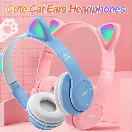 Headset Bluetooth Wireless MZ47 Gaming LED Model Kucing