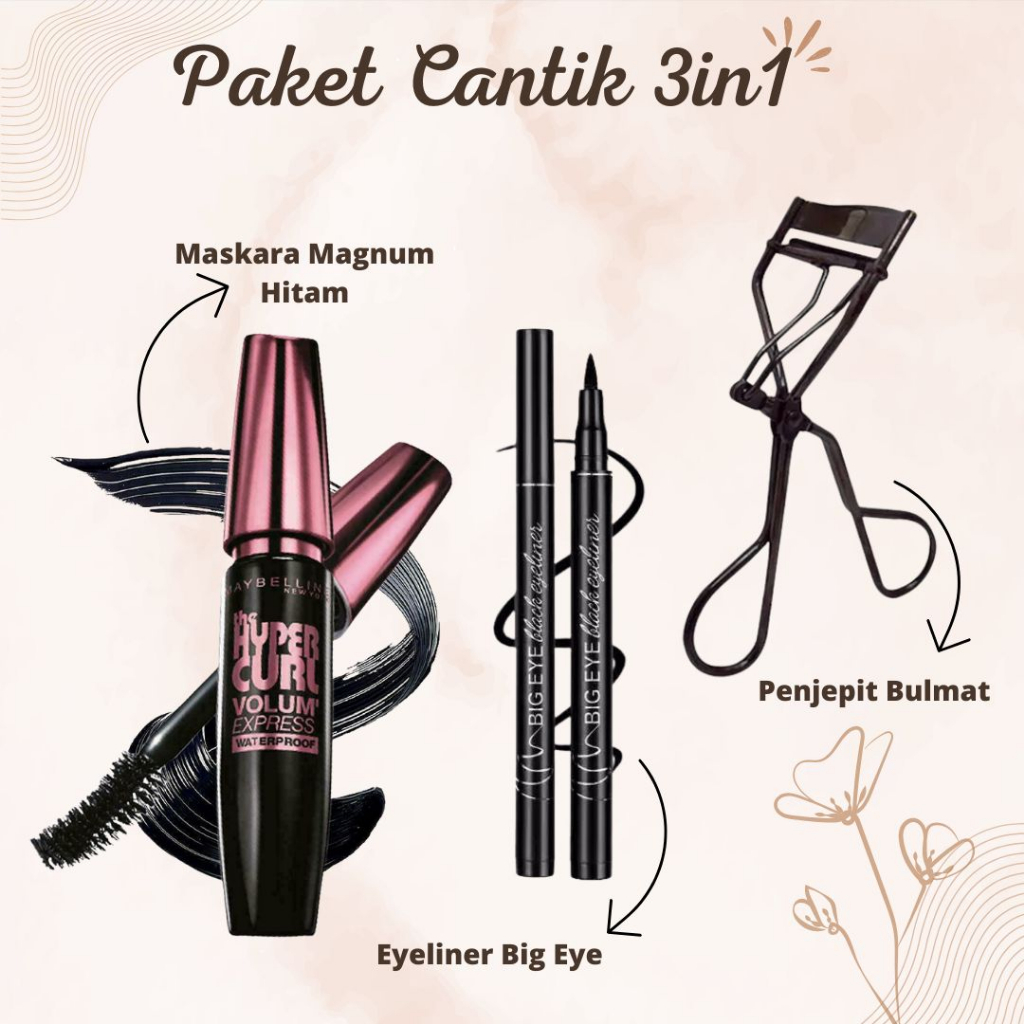 Paket Murah 3in1 Maskara Eyeliner Penjepit Bulmat untuk Mata Indah