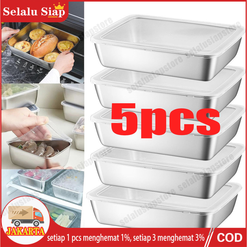 5pcs [BELI BANYAK LEBIH MURAH] Tempat Wadah Makanan Kontainer Makanan Sayuran Food Box Stainless